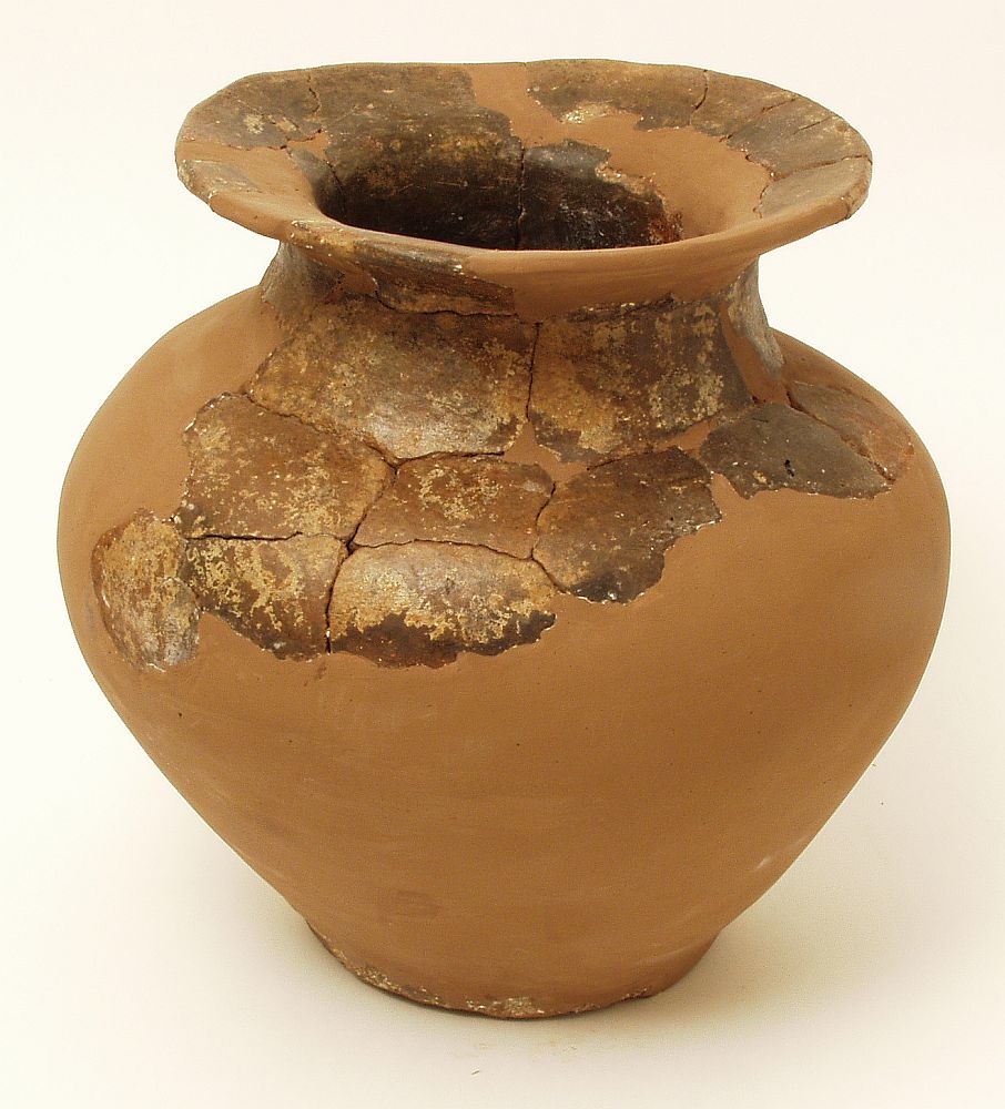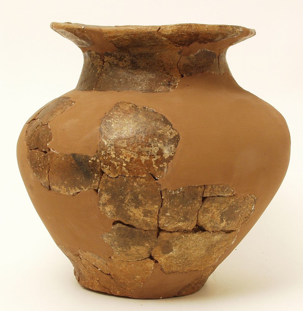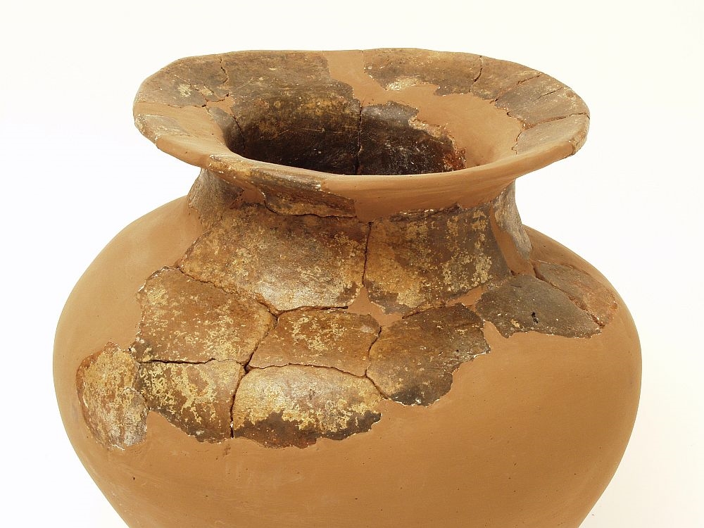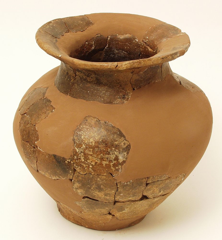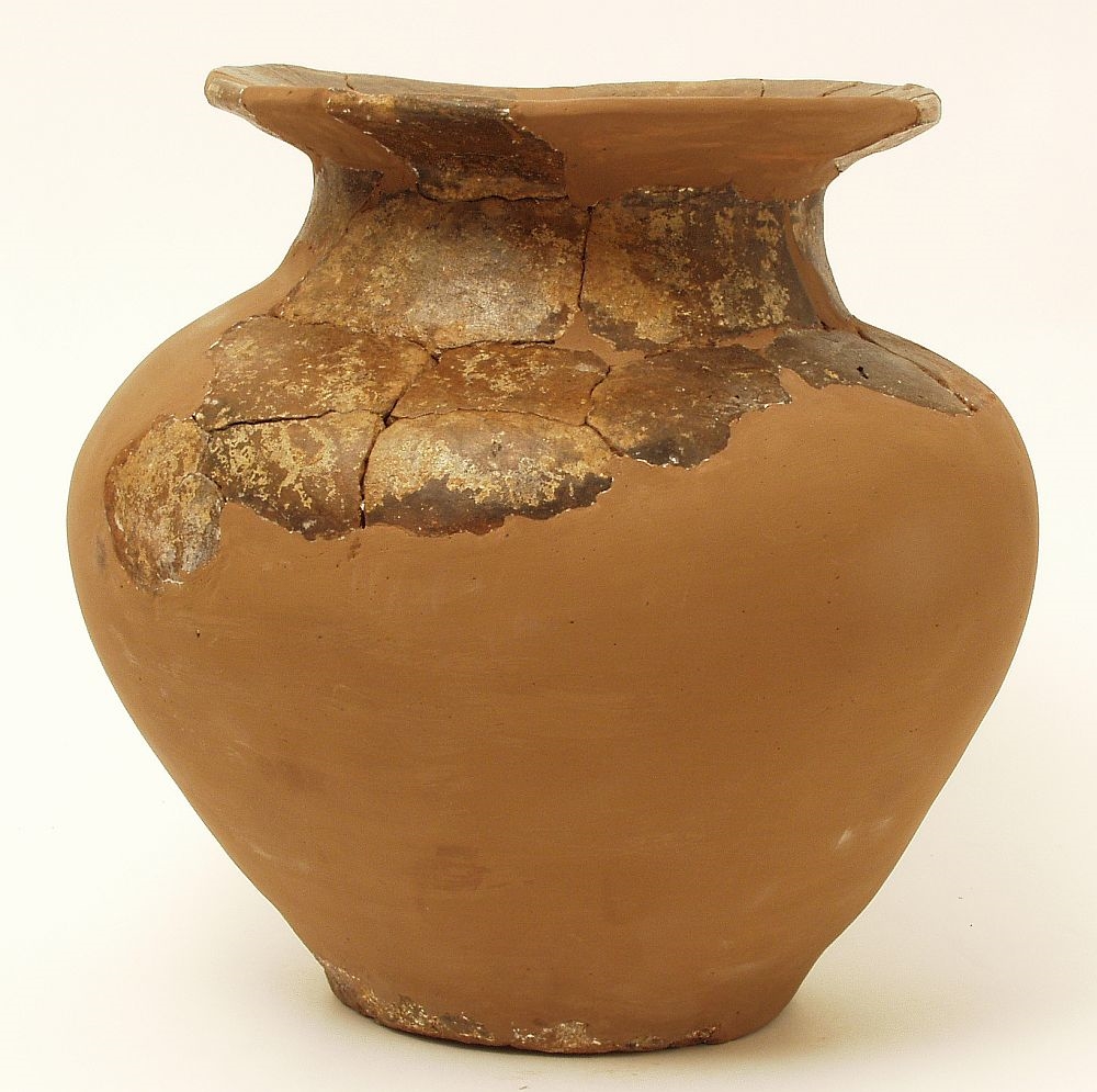 Žara s blago izbačenim ušćem prema vani ispod kojeg se nalazi kratki suženi konusni vrat, na koji se nadovezuje trbušasto tijelo koje završava uskim ravnim dnom. Keramika je tamnosmeđe boje i na njoj se uočavaju ostaci bijelog slikanja.