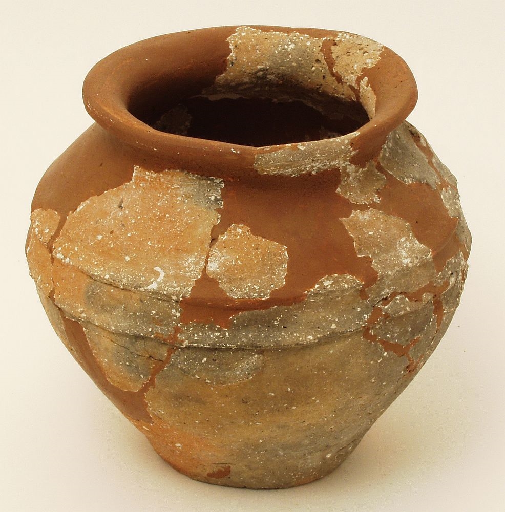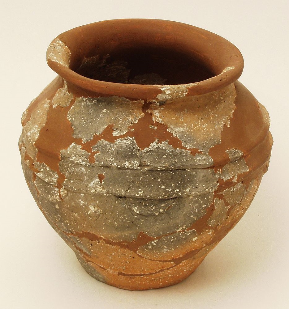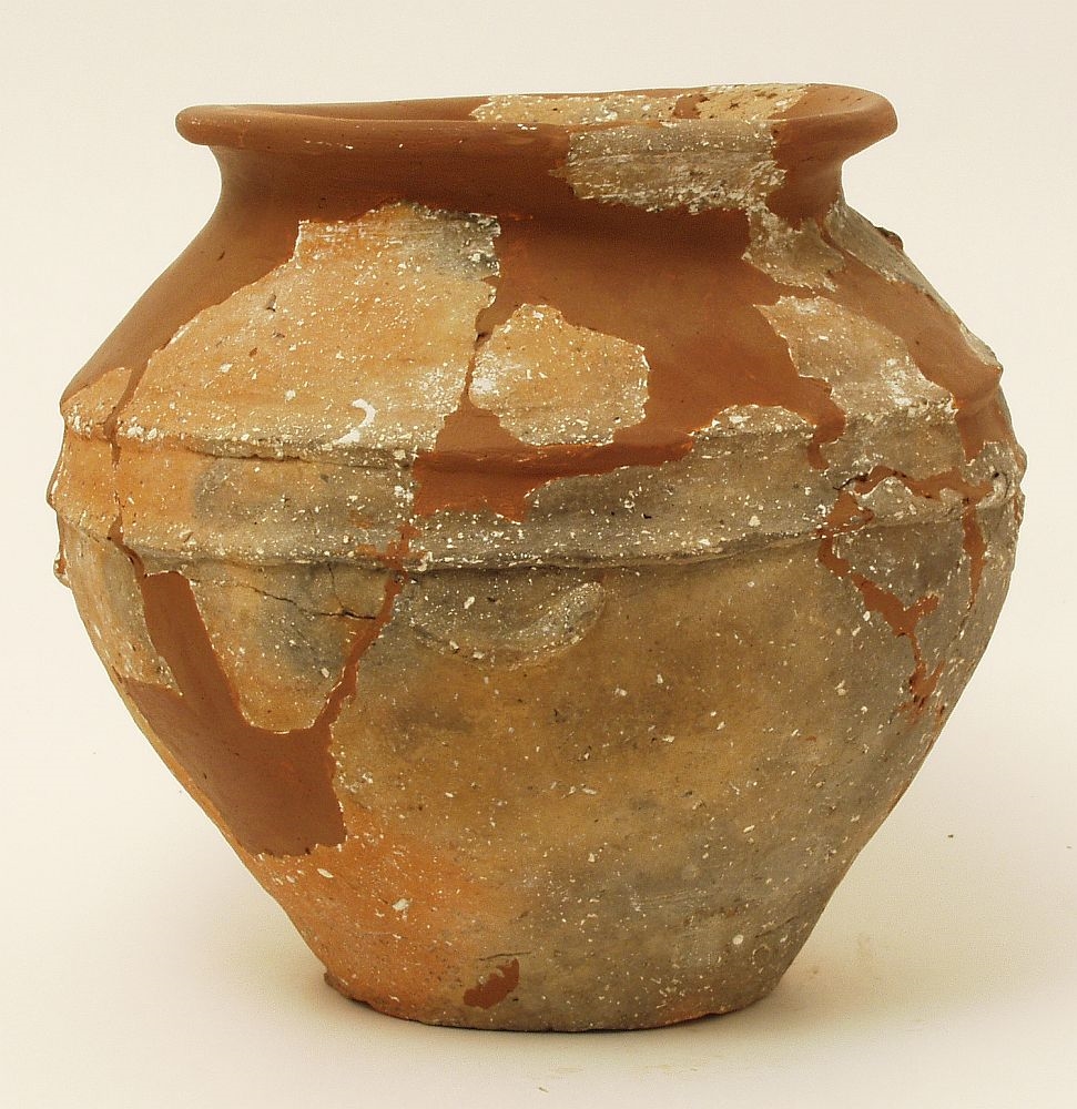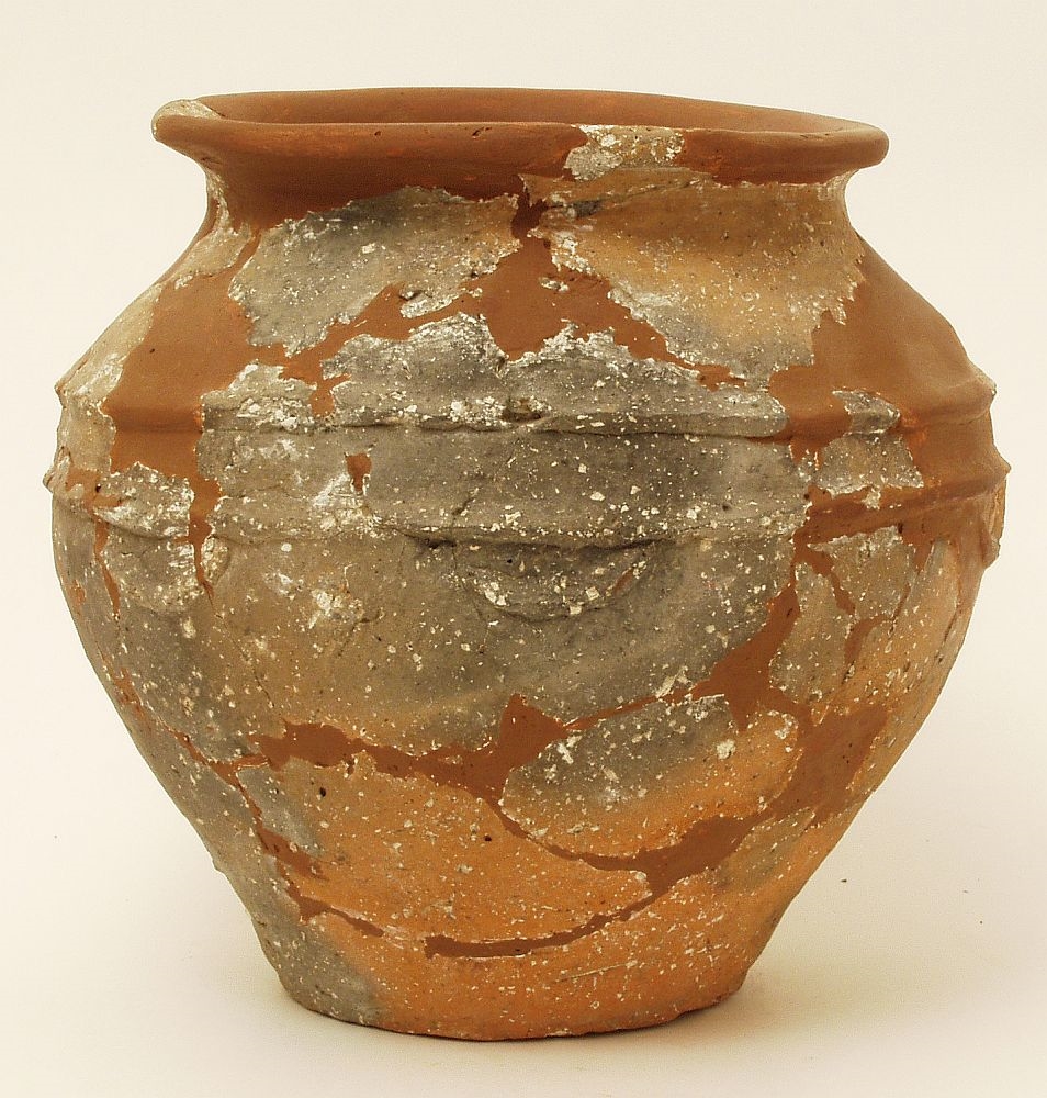 Žara sa prema vani izbačenim ušćem ispod kojeg se nalazi kratki konični vrat koji prelazi u zaobljeni trbuh na čijem se kraju nalazi usko i ravno dno. Keramika je crvenosmeđe do sive boje, grube izrade i sa puno primjesa kalcita. Na ramenu se nalaze dva plastična rebra koji okružuju cijelu posudu, a ispod najdoljnjeg se nalazi pet malih i prema dolje visećih plastičnih traka u obliku polumjeseca.