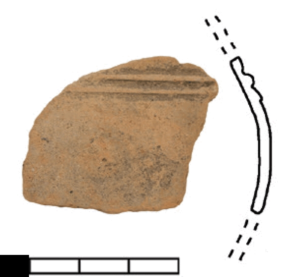 Ulomak trbuha kuglaste čaše. Keramika je crvene boje izrađena od fino pročišćene gline.