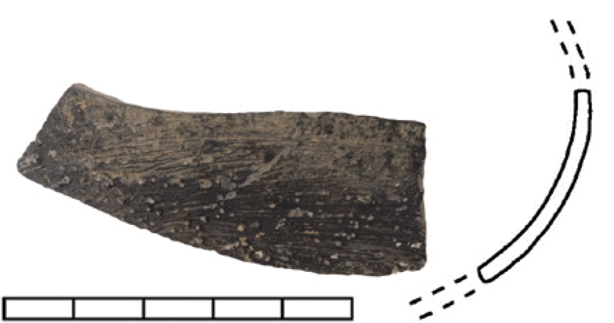 Ulomak trbuha posude. Keramika je sive boje izrađena od fino pročišćene gline.