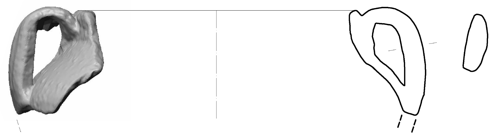 Ulomak vrča sa djelom oboda i ručkom ispod njega.