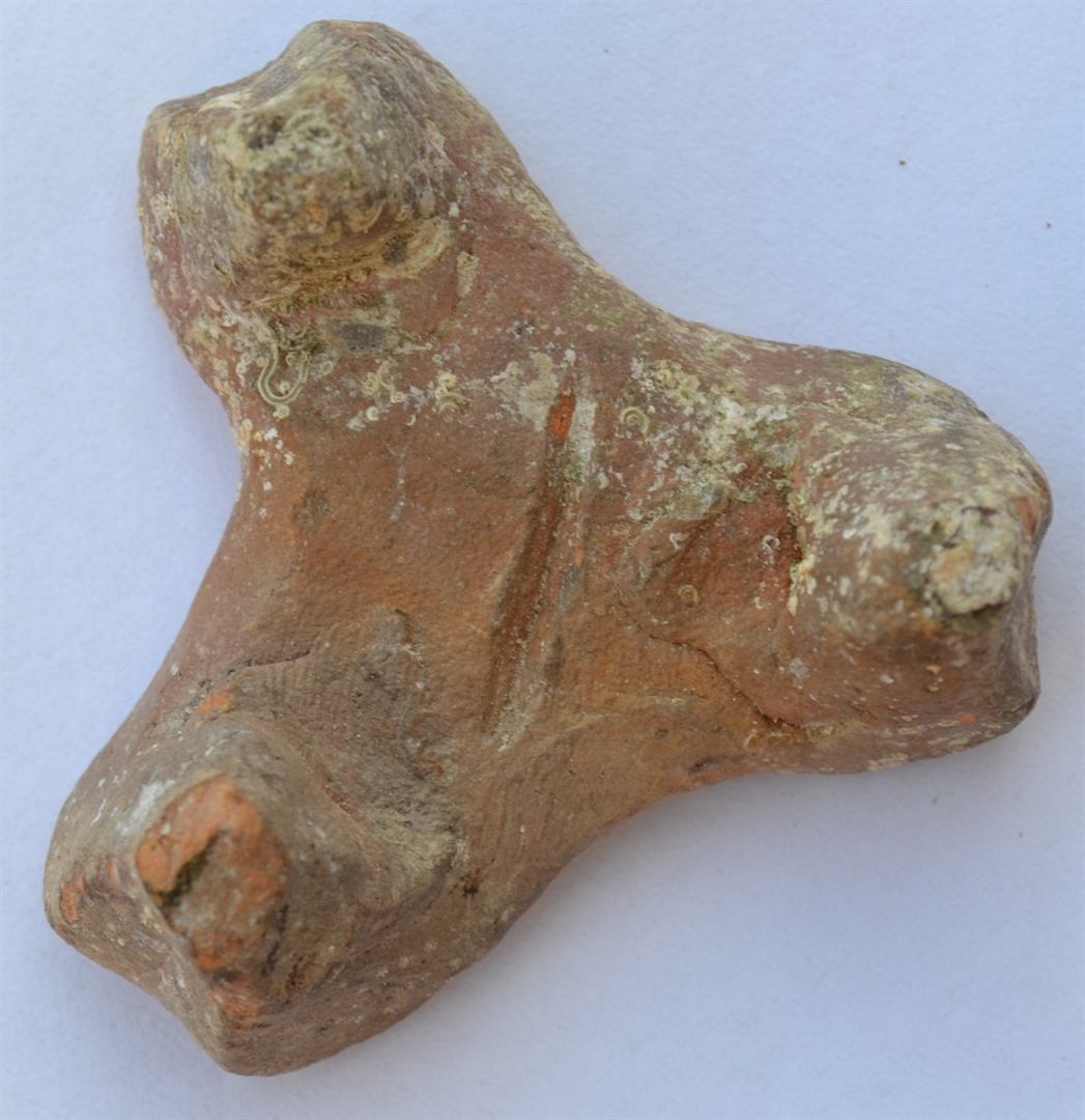 Cjelovito sačuvani trokraki podložak. Oker, dobro pročišćena glina.