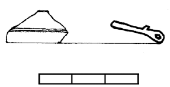 Ulomak prstenastog cjevastog dna stopice pehara na nozi, prozirno zelenkasto staklo.