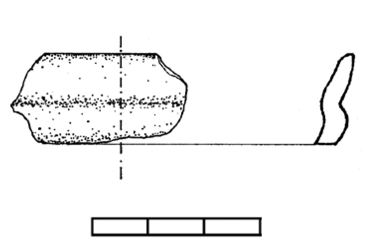 Ulomak razgrnutog oboda s ispupčenjem, blijedo zelenkasto staklo.