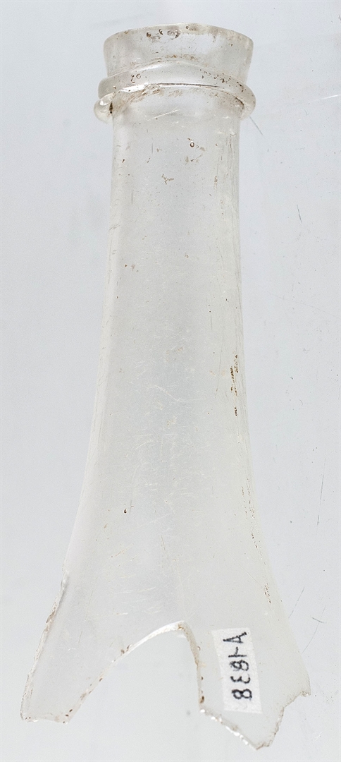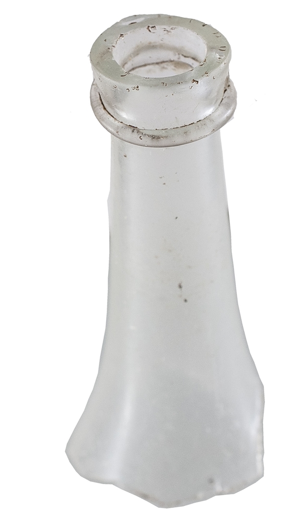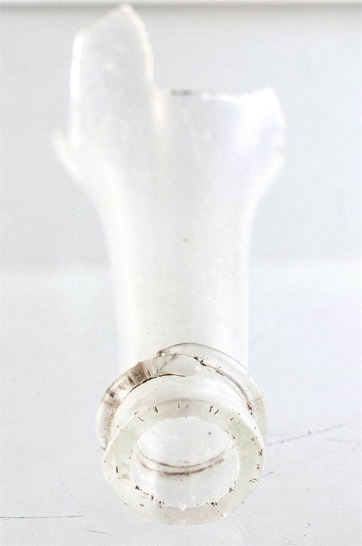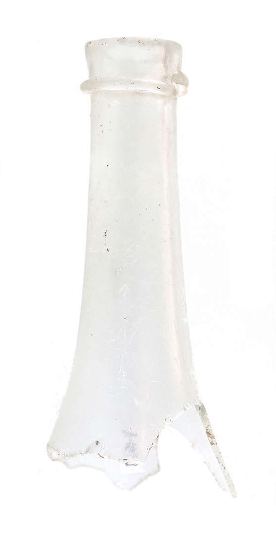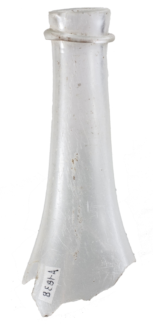 Gornji dio prozirne boce izduženog grla s zadebljanjem ispod otvora.
