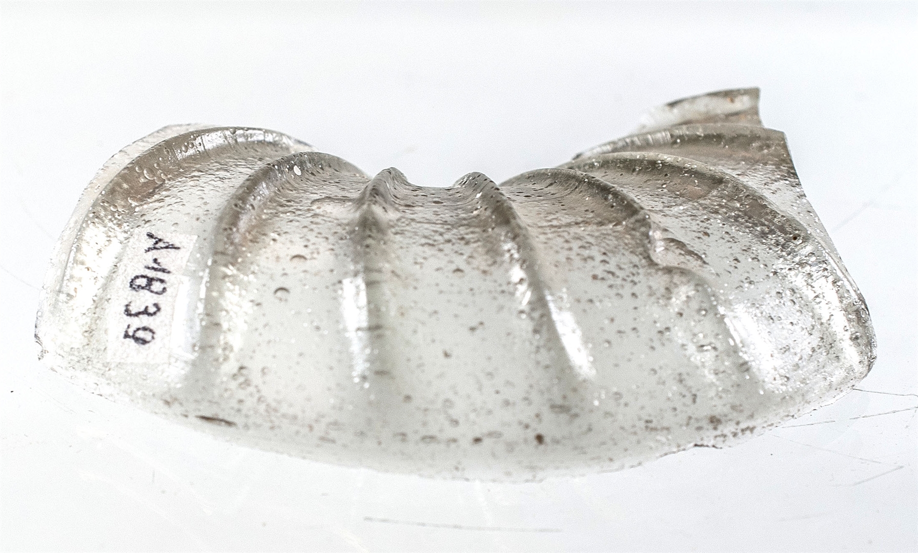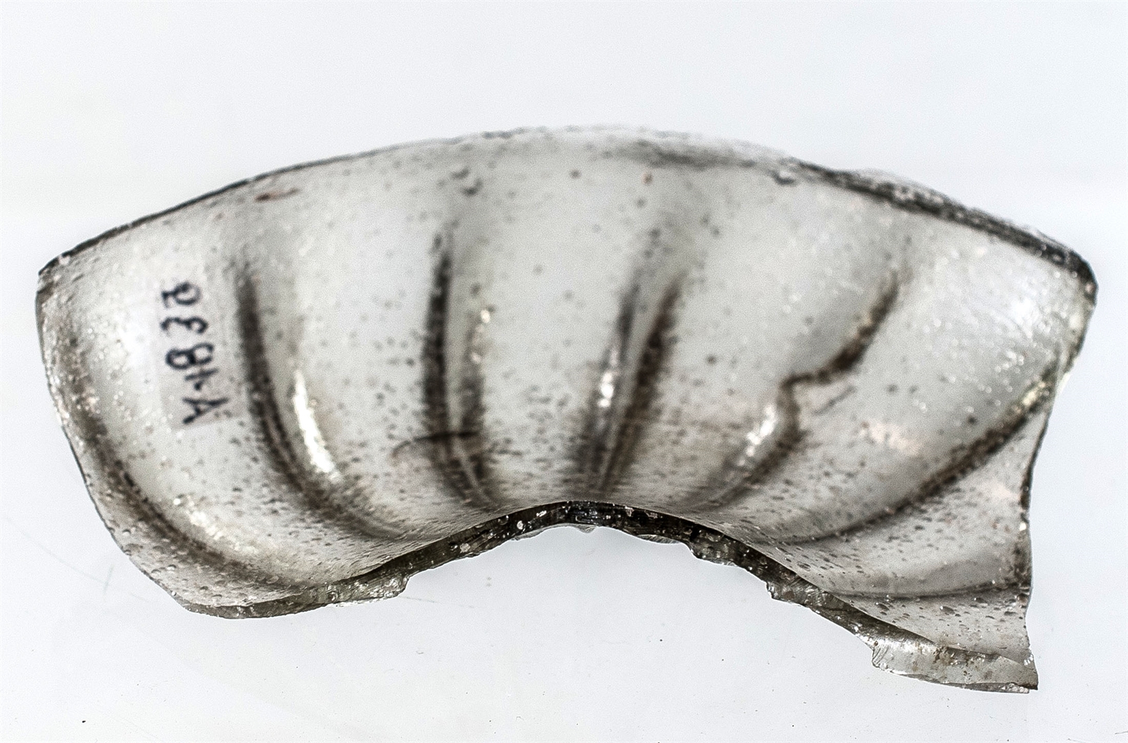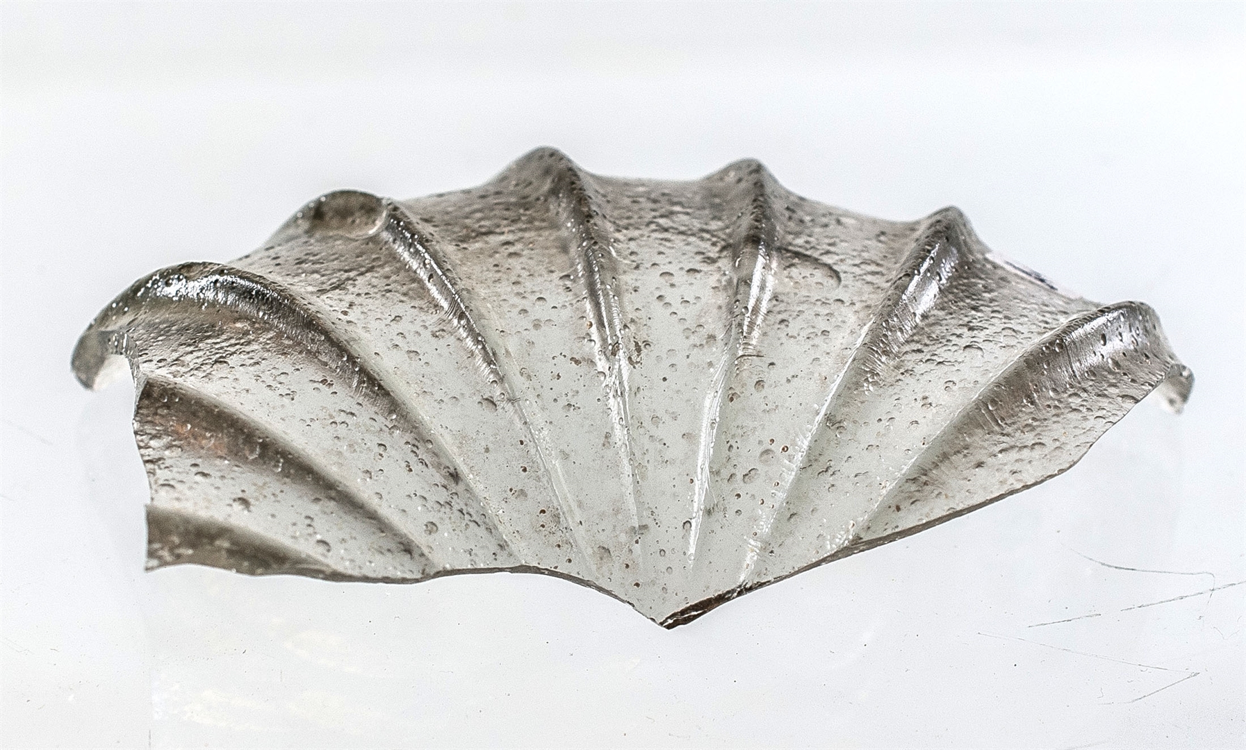 Dno tamnosmećkaste zdjelice s okomitim rebrima.