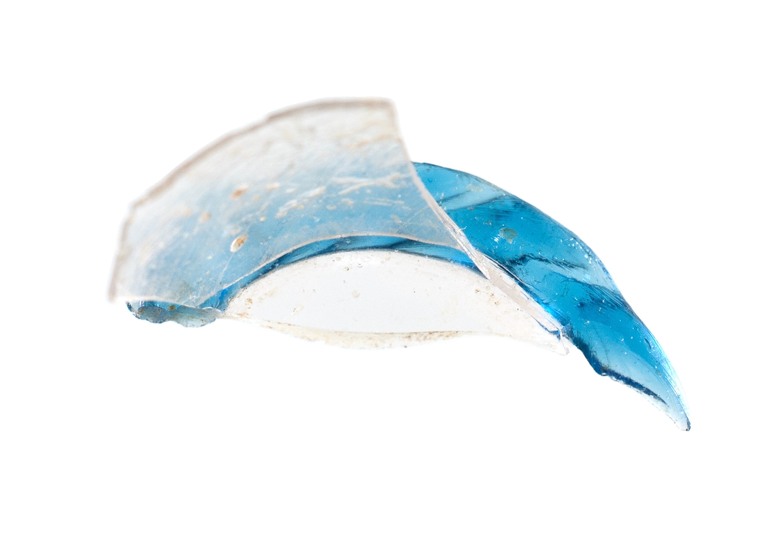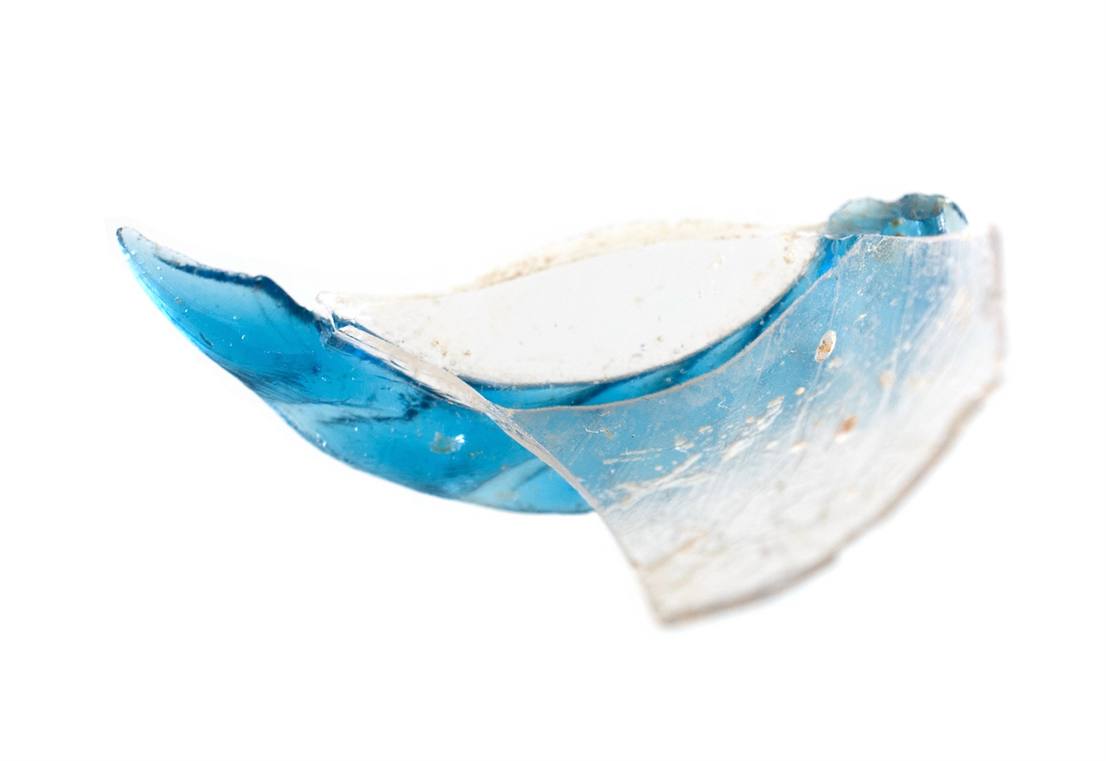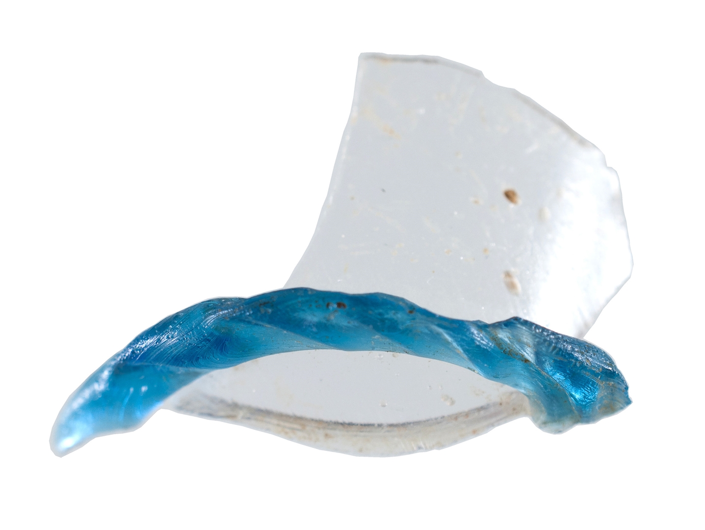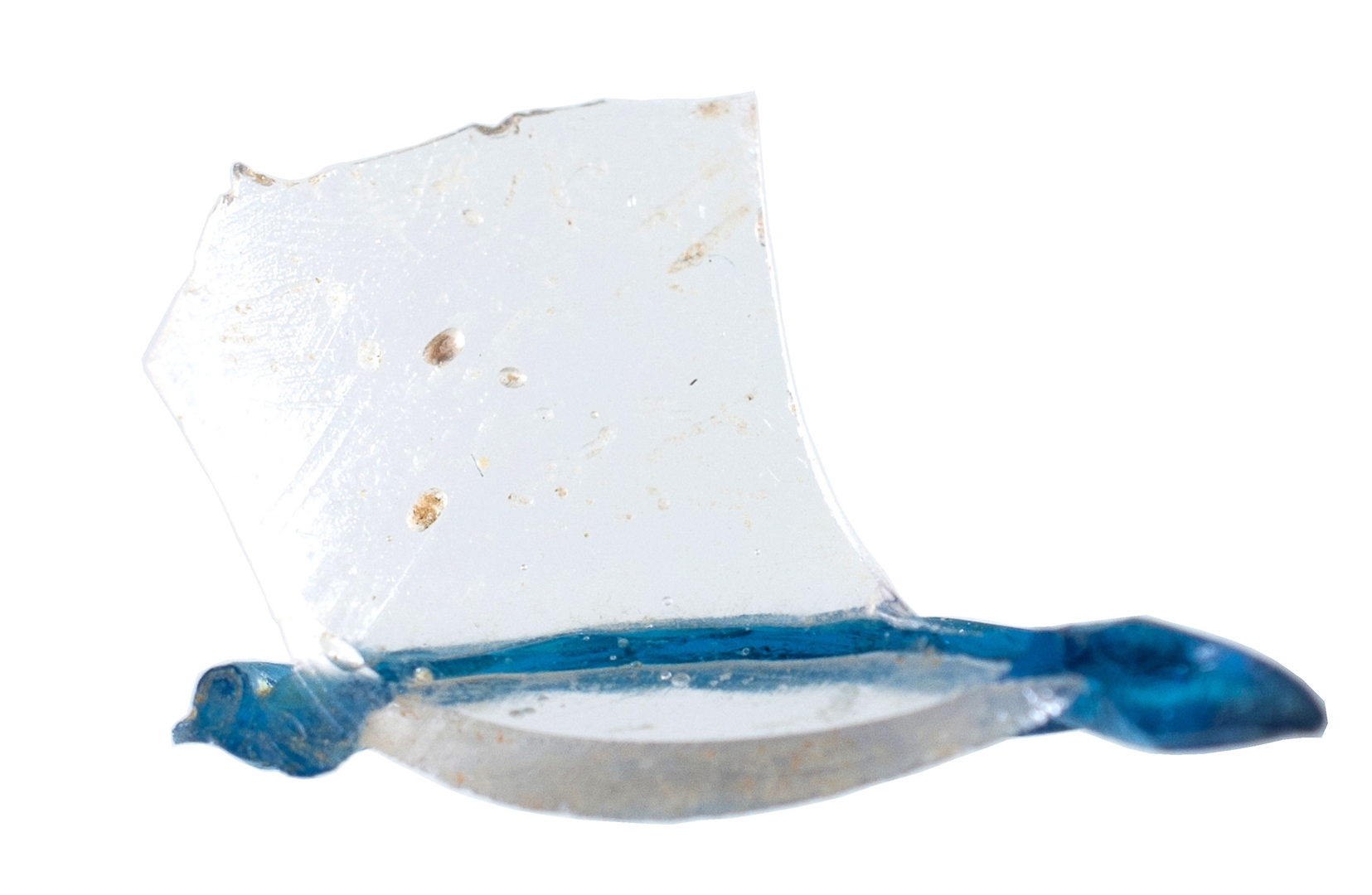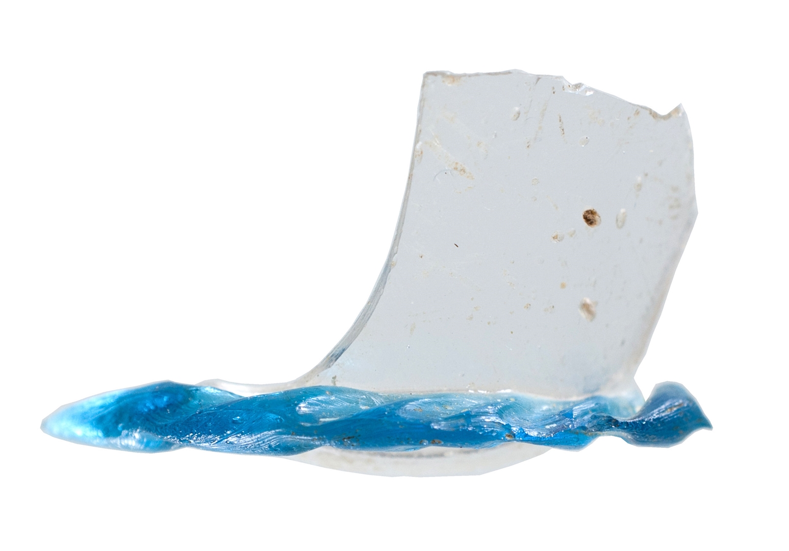 Dio prozirne čaše sa svijetlo plavim vodoravno apliciranim rebrom.