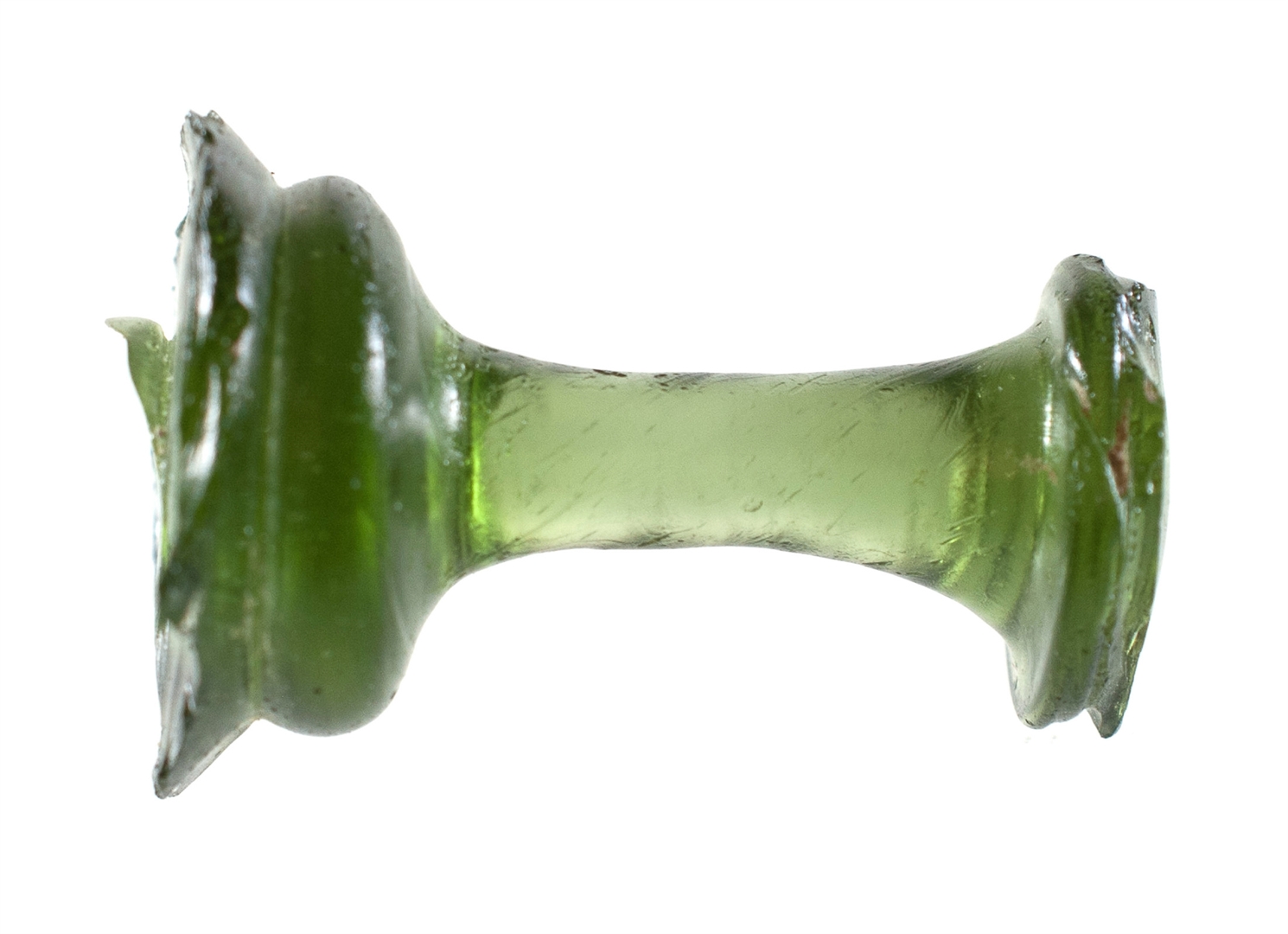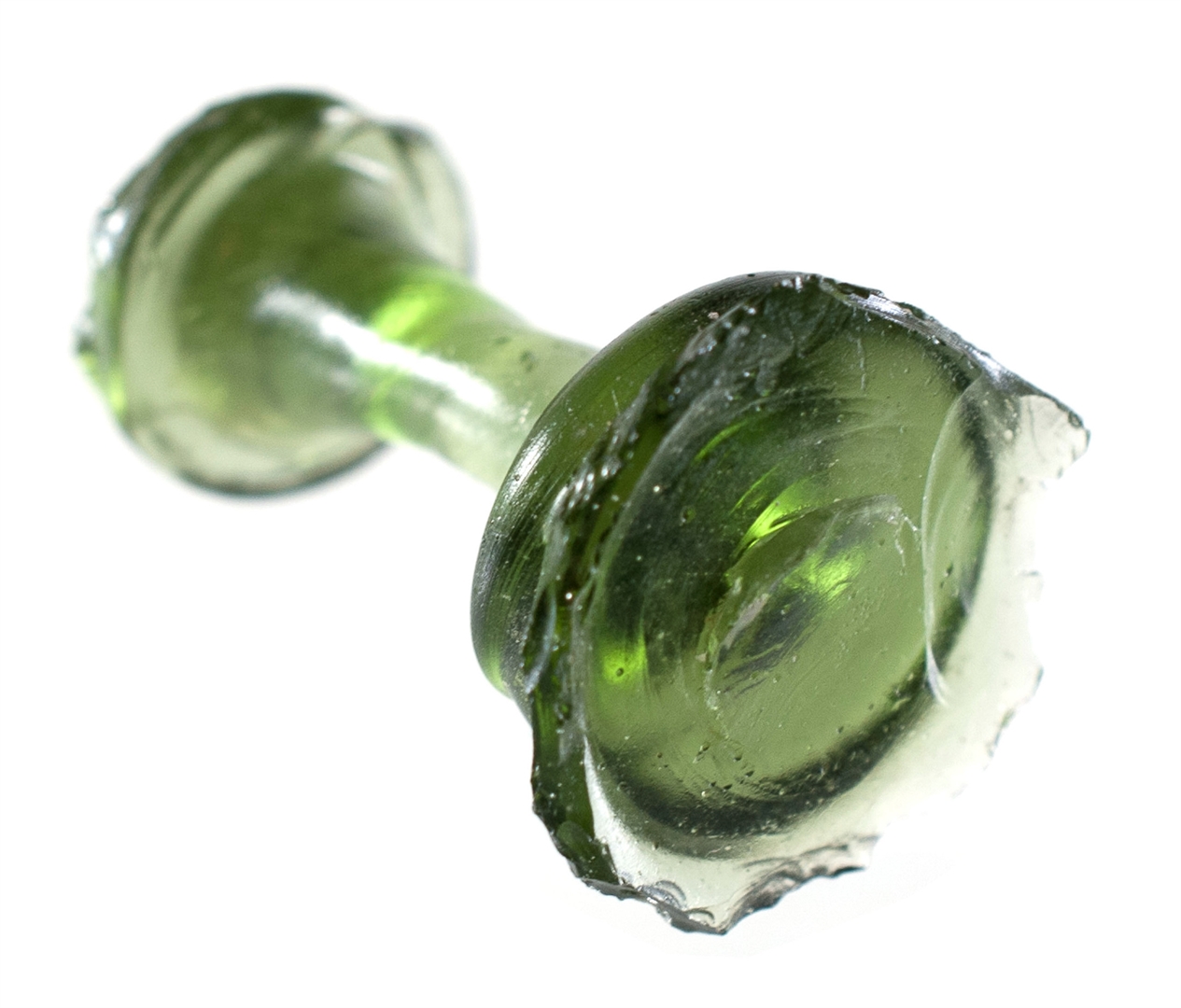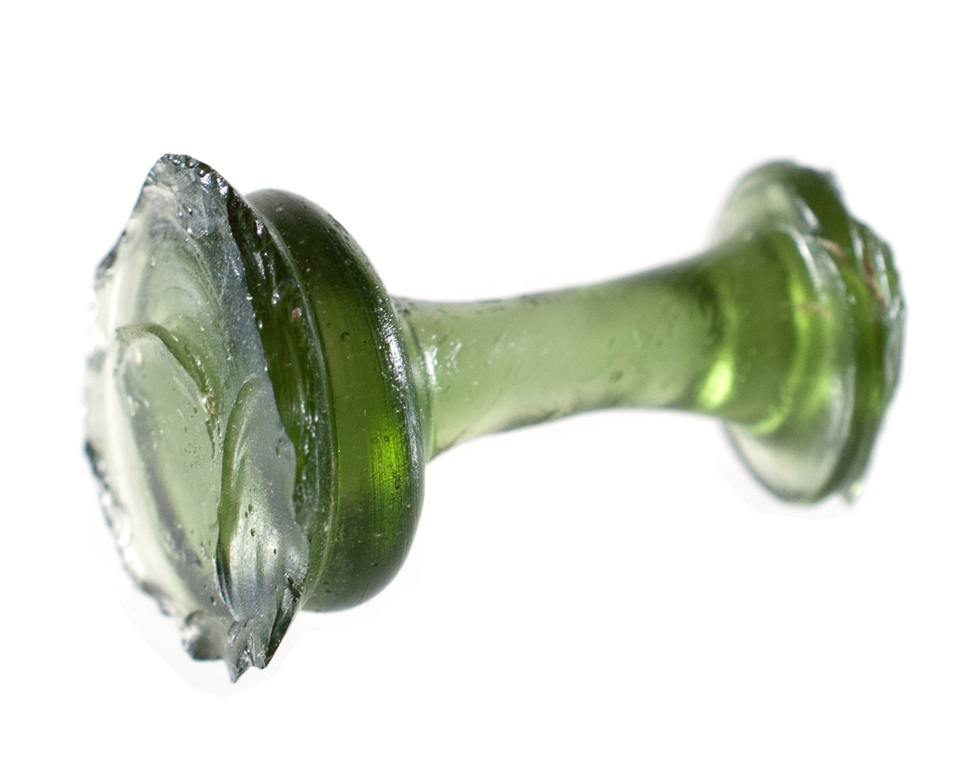 Zelena nožica čaše s kuglastim zadebljanjem.