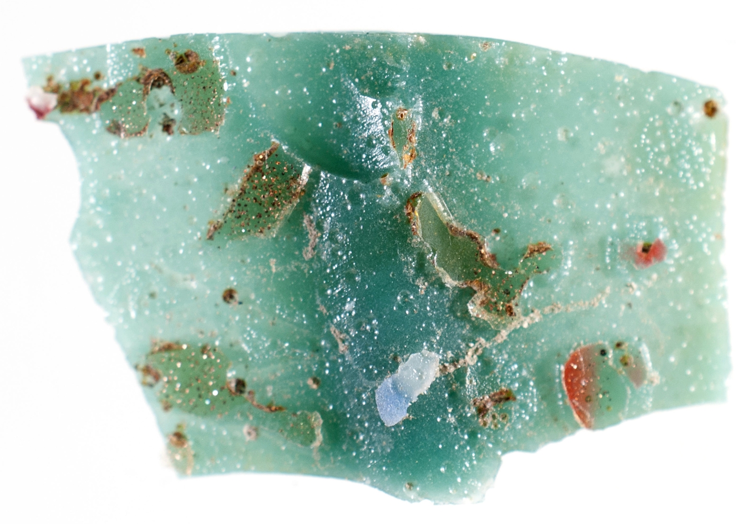 Ulomak zelenkastog stakla s tragovima pozlate.
