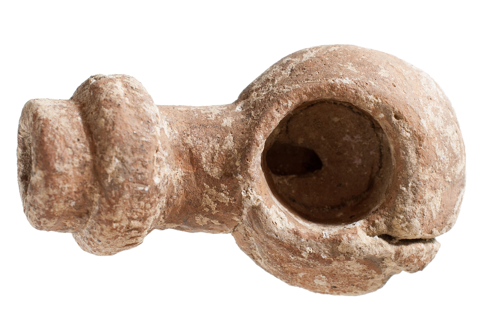 Lula smeđe boje. Visina lule =17 mm Dužina lule = 48 mm Promjer prostora za duhan = 14 mm Unutrašnja visina prostora za duhan =? mm Unutrašnji promjer tuljca = 7 mm