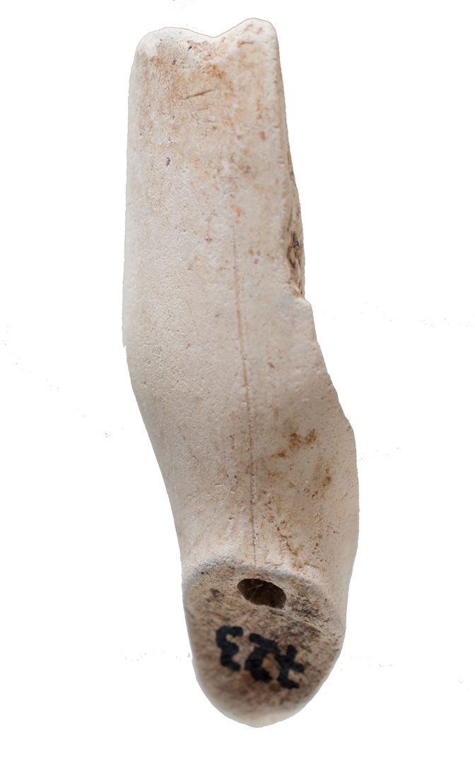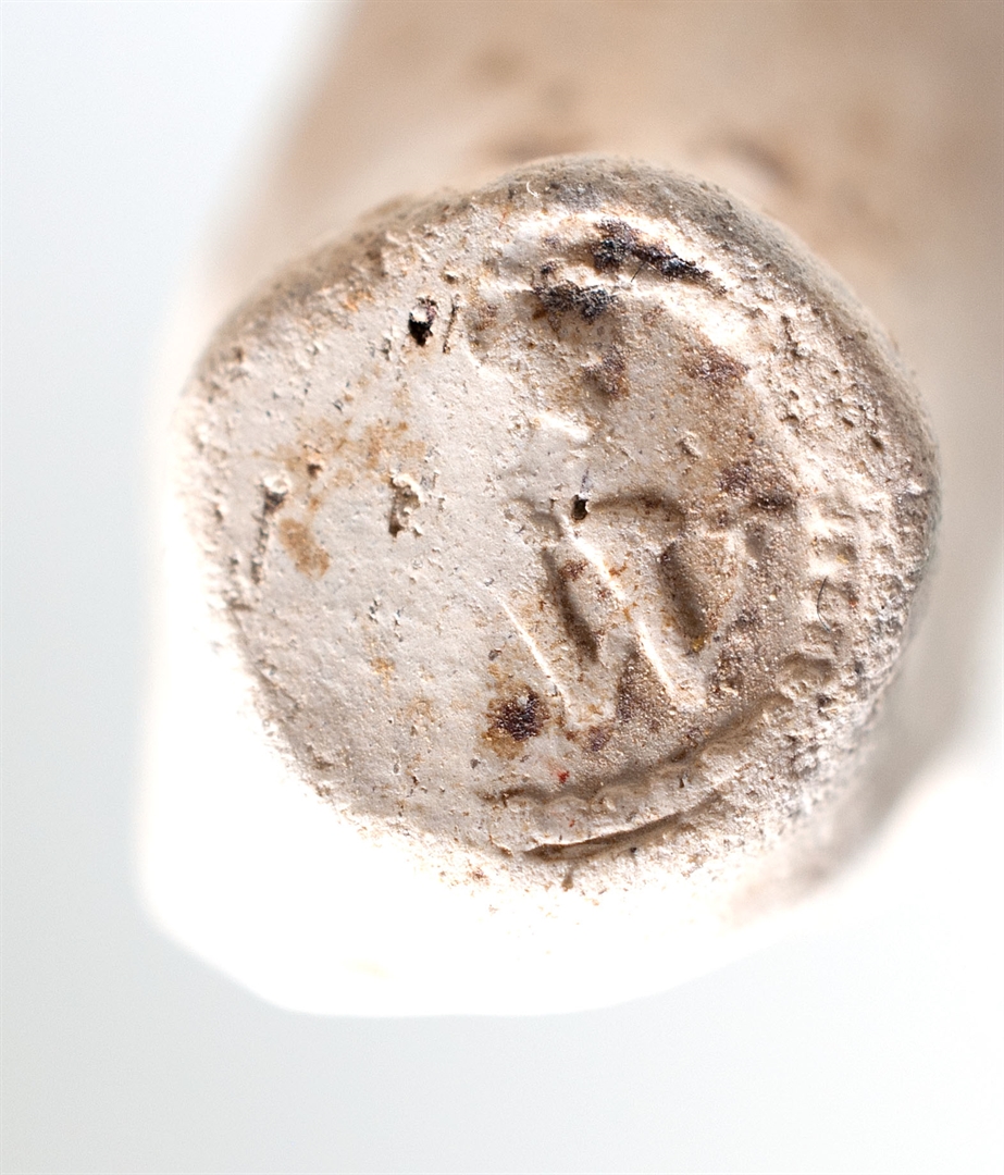 Zapadna lula bijele boje s pečatom [?]W i iznad zvijezdom. Visina lule = 36 mm Dužina lule = Promjer prostora za duhan = 13 mm Unutrašnja visina prostora za duhan = 26 mm Unutrašnji promjer tuljca = ? mm