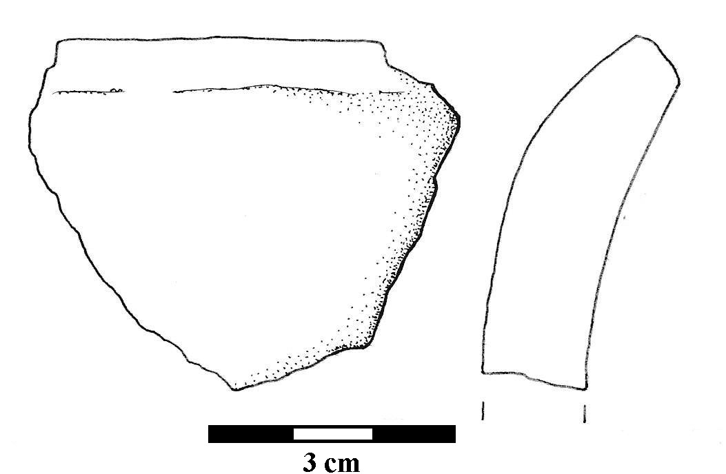 Ulomak gornjeg djela posude s prema vani izvijenim ušćem. Keramika je narančaste boje.