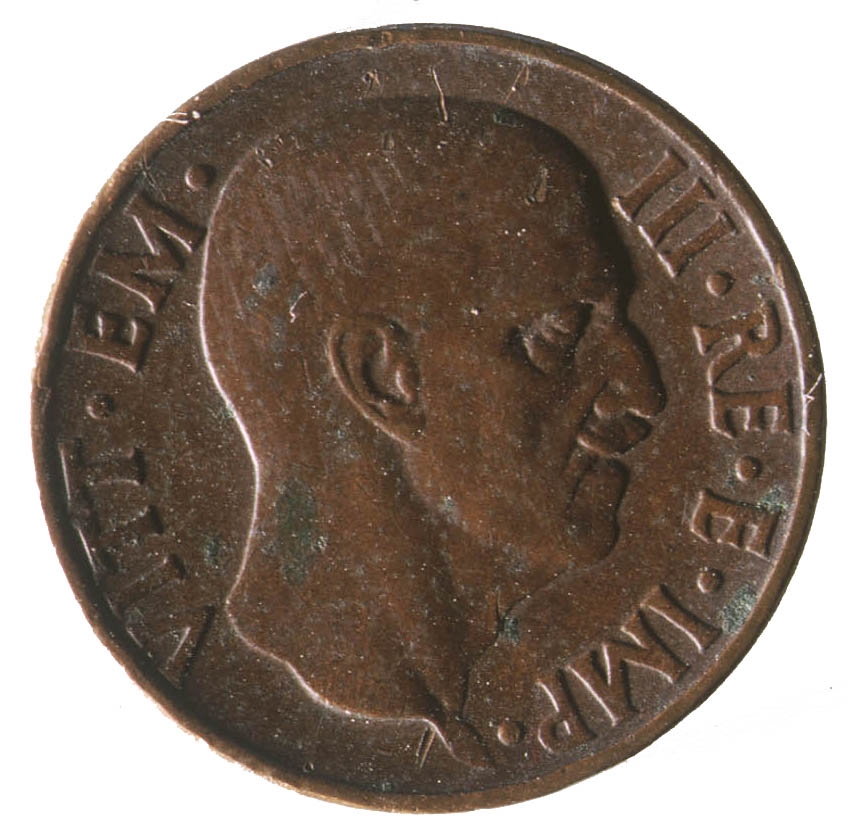 Orao raširenih krila koji u kanđama drži fascio, iznad kojeg je natpis ITALIA. Ispod fascia, sa desne strane, nalazi se godina 1938. a ispod nje veliko slovoR. Sa desne strane rimski broj XVI. Na dnu se nalazi grb, a ispod njega natpis O. ROMACNOLI. Sa lijeve strane grba nalazi se slovo C. , a sa desne strane broj 5.