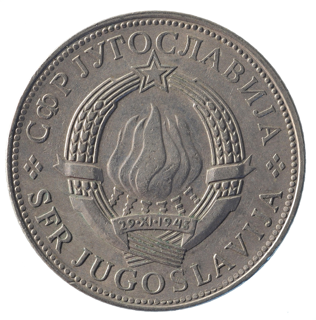 Avers: U sredini državni grb. U oko njega uz rub polukružno napisan tekst SFR JUGOSLAVIJA na latinici i ćirilici. Revers: U sredini broj 10 (nominala), oko njega tekst DINAR na četiri jezika, a ispod toga godina 1976. Duž gornjeg ruba polukružno poredano 6 petokrakih zvjezdi.