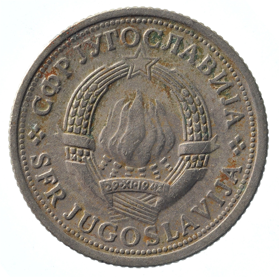 U sredini državni grb. U gornjem djelu uz rub polukružno napisan tekst SFR JUGOSLAVIJA na latinici i ćirilici.