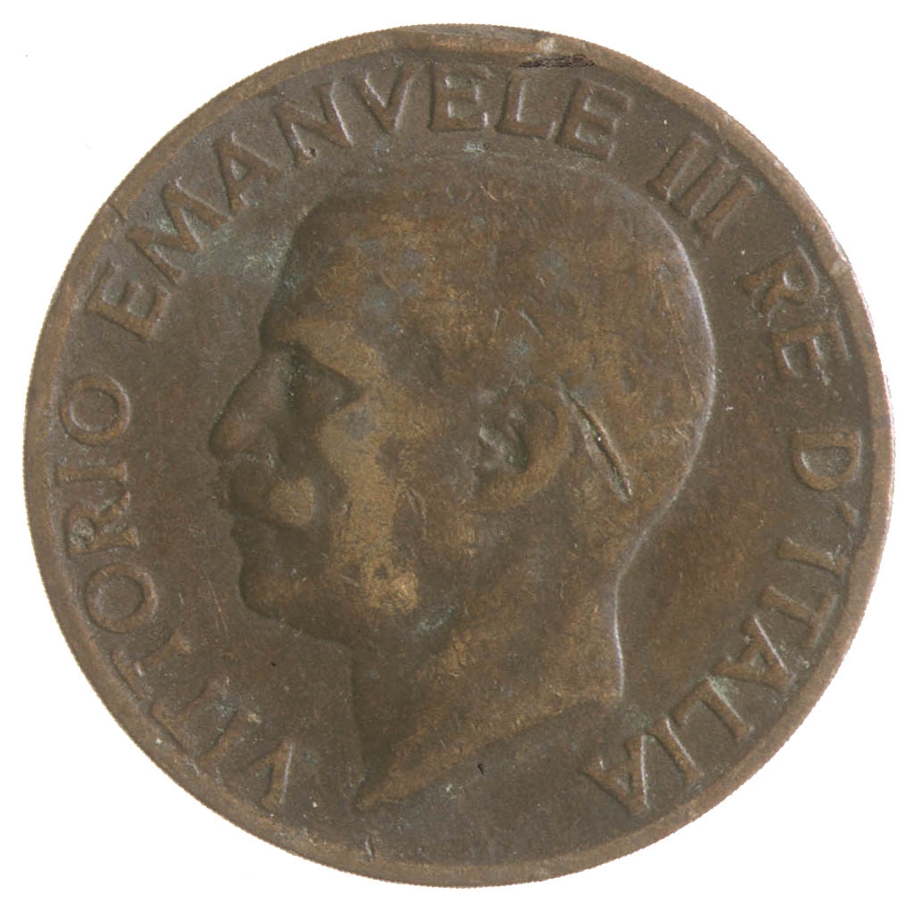 Centralni dio kovanice zauzima profil muške osobe sa pogledom u lijevo. Kružno uz rub kovanice proteže se natpis VITTORIO. EMANUELE. III. RE. D''ITALIA. Na dnu uz rub kovanice nalazi se natpis A. MOTTI.