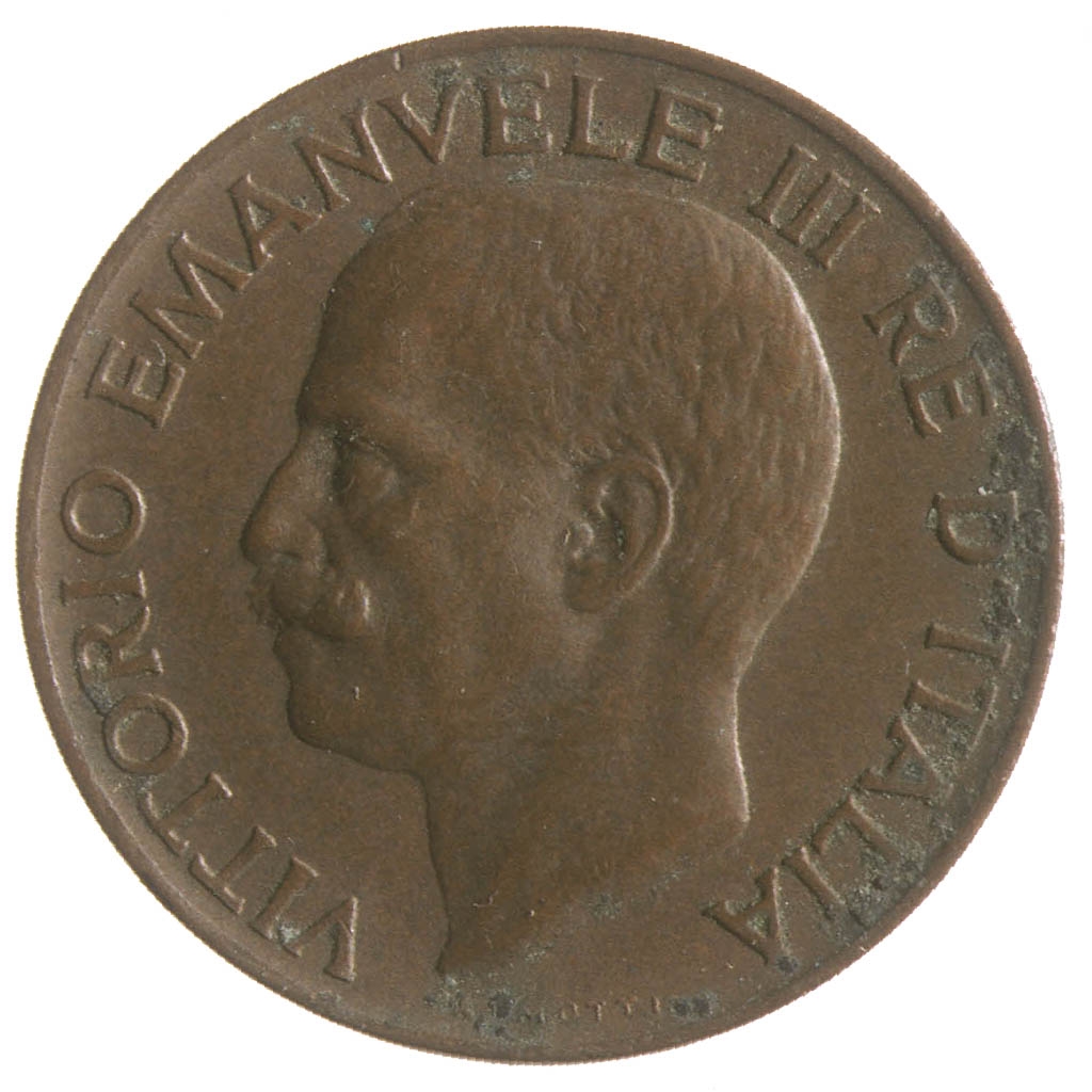 Centralni dio kovanice zauzima profil muške osobe sa pogledom u lijevo. Kružno uz rub kovanice proteže se natpis VITTORIO. EMANUELE. III. RE. D''ITALIA. Na dnu uz rub kovanice nalazi se natpis A. MOTTI.