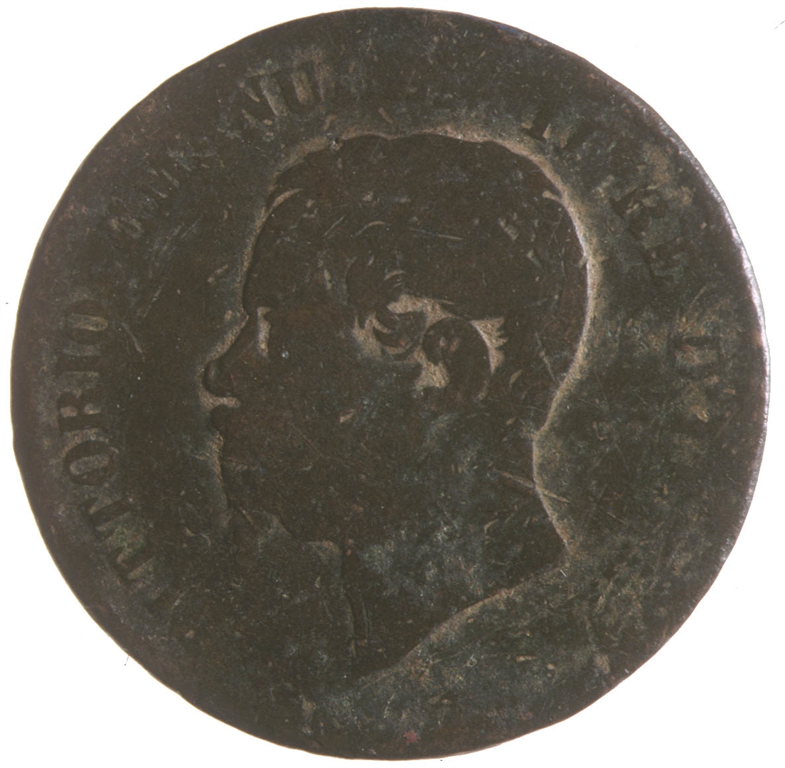Avers: Profil kralja s pogledom u lijevo. Okolo jedva čitljiv natpis VITTORIO EMANUELE II RE D''ITALIA. Revers: Gotovo posve izlizan. U sredini natpis u tri reda 5 / CENTESIMI / 1862. Oko natpisa dvije grančice (hrast i maslina) na vrhu zvijezda a na dnu oznaka kovnice N.