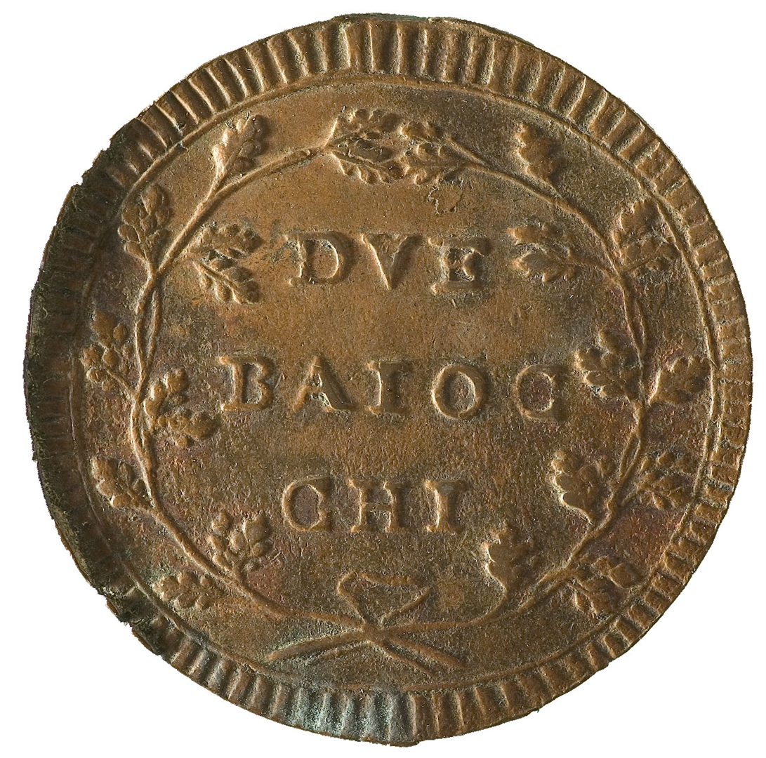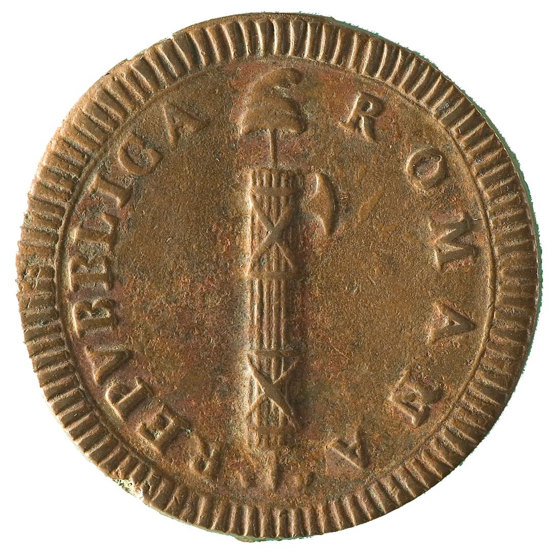 Avers: U sredini fascio na čijem se vrhu nalazi pileo. Okolo natpis REPUBLICA ROMANA Revers: U sredini natpis u tri reda DVE / BAIOC / CHI, a oko njega vijenac od hrastovih grančica.