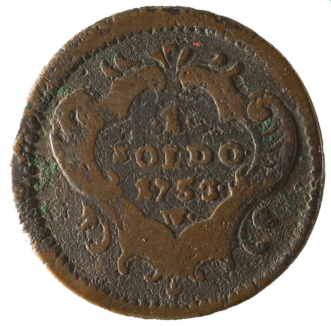 Avers: U sredini, unutar ukrašenog okvira iznad kojeg je kruna, nalazi se grb Gorice sa propetim lavom. Revers: U sredini unutar ukrašenog okvira nalazi se oznaka vrijednosti novca 1 Soldo. Ispod nje nalazi se godina 1753 i oznaka kovnice W.