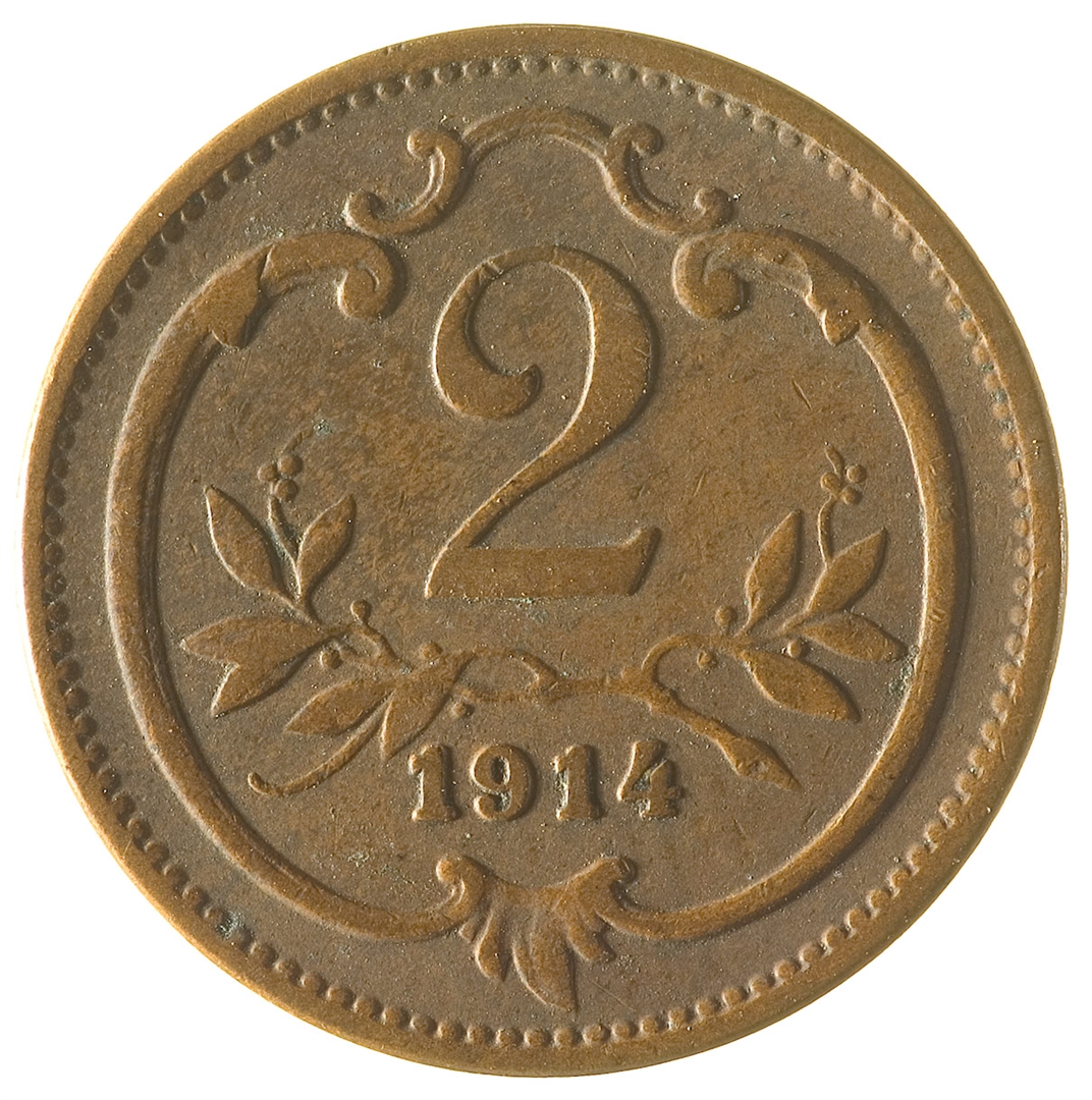 Revers: U gornjem djelu ovalnog okvira broj 2. Ispod njega maslinova grančica i godina kovanja 1914.