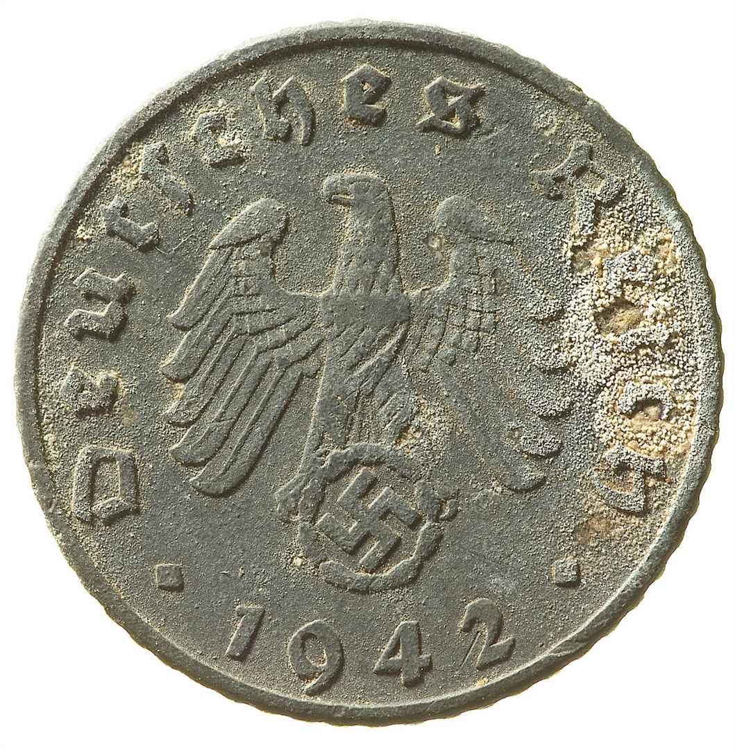 Avers: U sredini grb u obliku orla s raširenim krilima koji u kanđama drži kružni vijenac unutar kojeg se nalazi svastika. Oko ruba tekst Deutsches Reich a na dnu godina kovanja 1942.