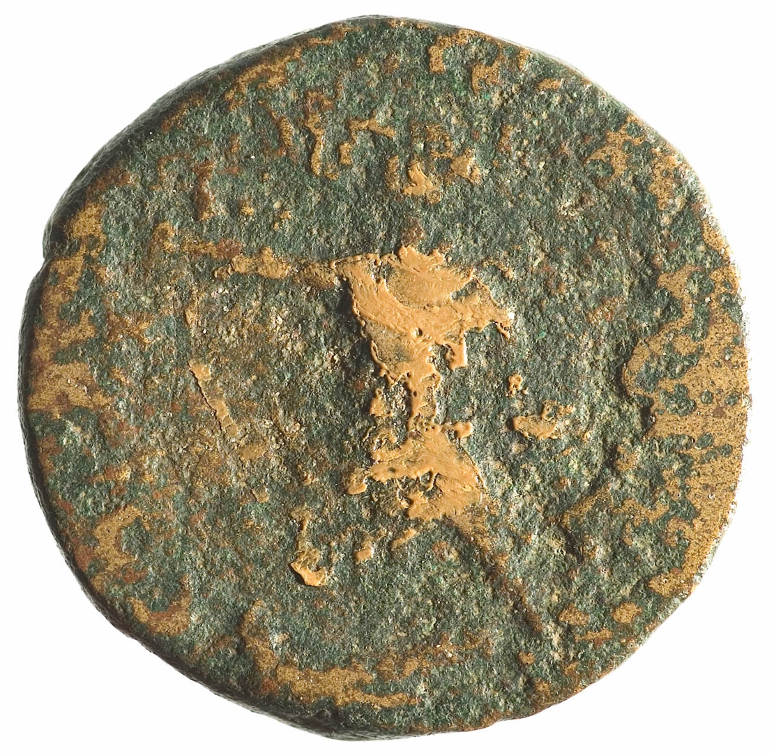Avers: Profil udesno, uništen. Revers: Stojeća figura, legenda uništena.