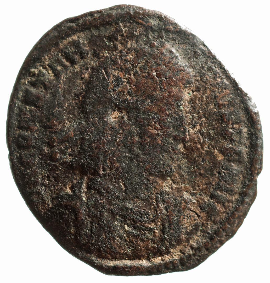 Avers: Profil udesno, ...CONSTANTIUS PFAVG. Revers: Car probada zarobljenika, FEL