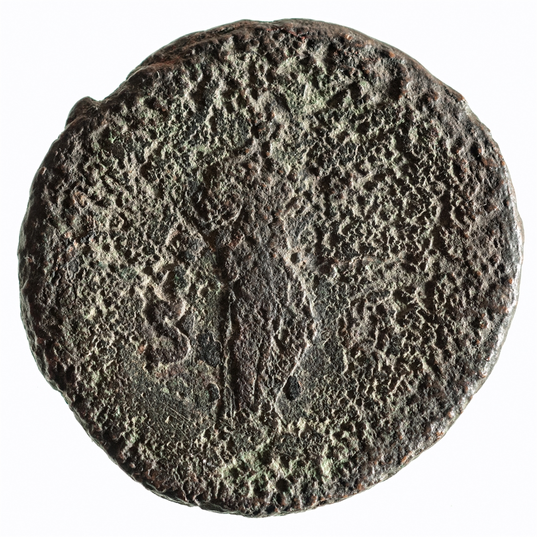 Avers: Profil udesno, uništen. Revers: Stojeća ženska figura, uništena.