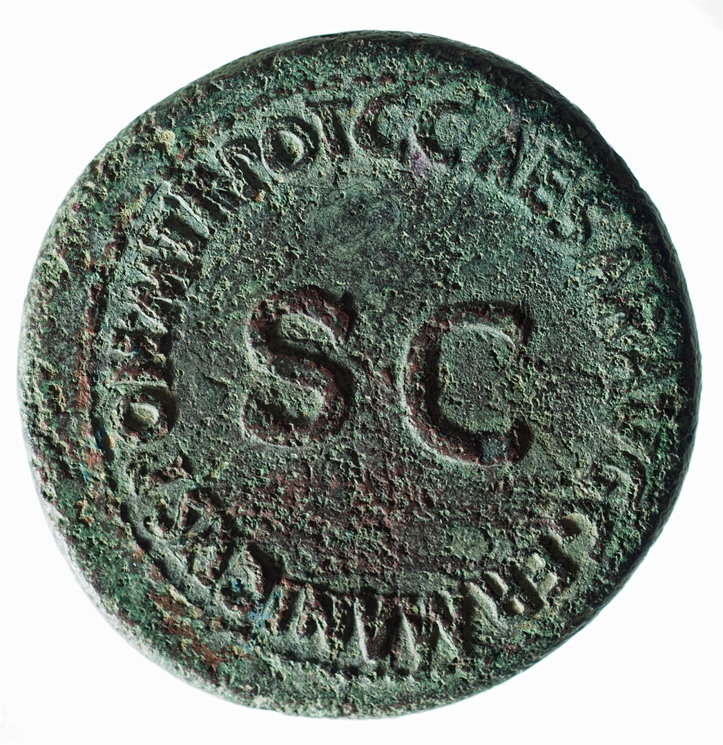 Avers: Dva konjanika u kasu udesno, NERO ET DRVSVS CAES. Revers: U sredini SC, uokolo C. CAESAR. AVG. GERMANICVS. PON. M. TR. POT.