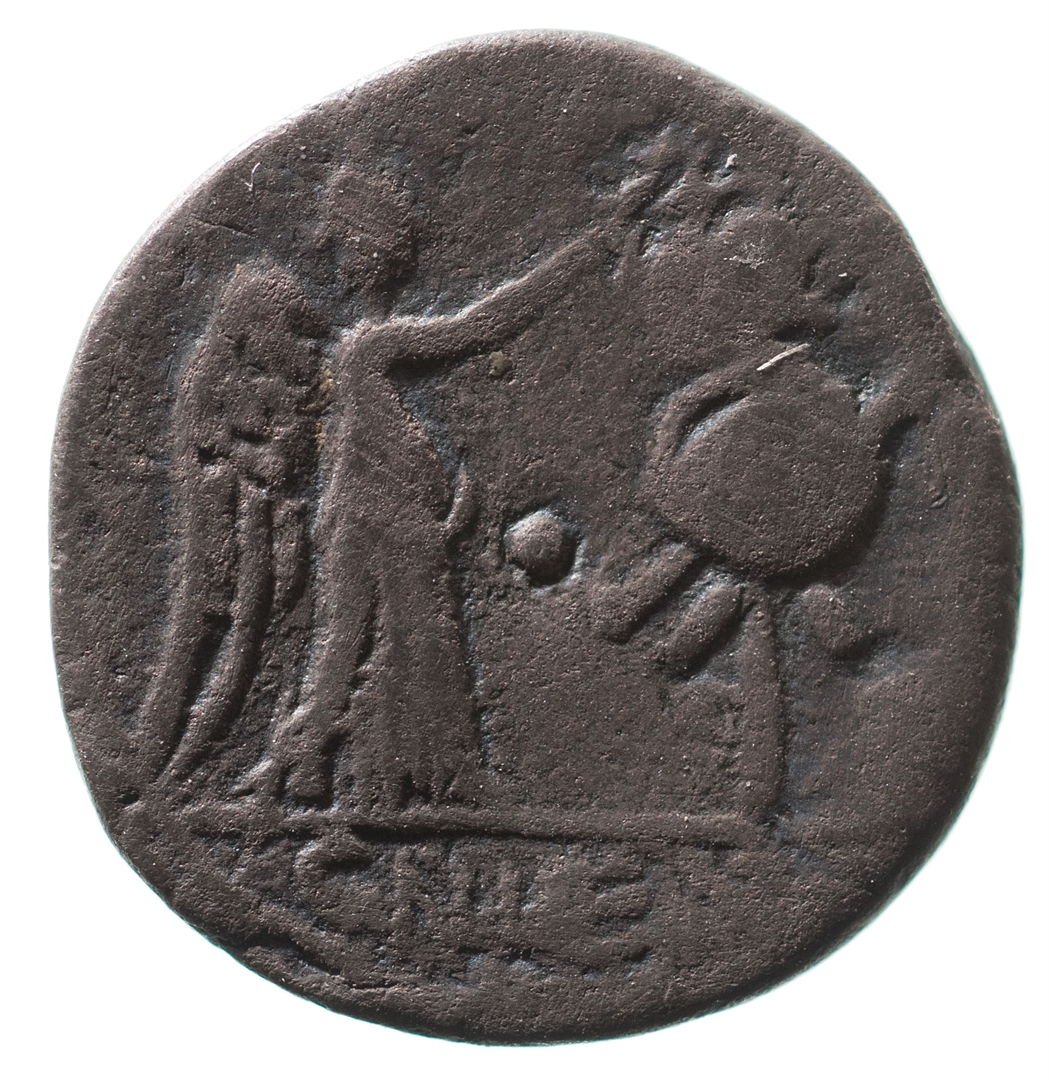 Avers: profil Jupitera okrenut udesno Revers: Viktorija ispred trofeja; u egzergu natpis: CN. LENTV