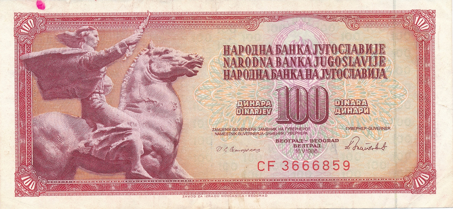Na lijevoj strani prikaz konjanika.. Na desnoj strani nalazi se serijski broj, potpisi i nominala.