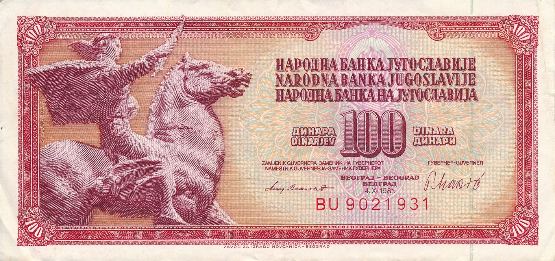Na lijevoj strani prikaz konjanika.. Na desnoj strani nalazi se serijski broj, potpisi i nominala.