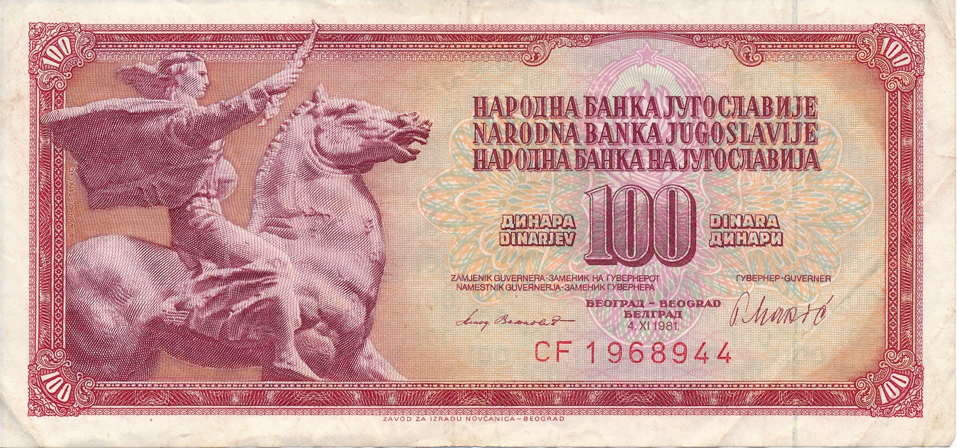 Na lijevoj strani prikaz konjanika.. Na desnoj strani nalazi se serijski broj, potpisi i nominala.
