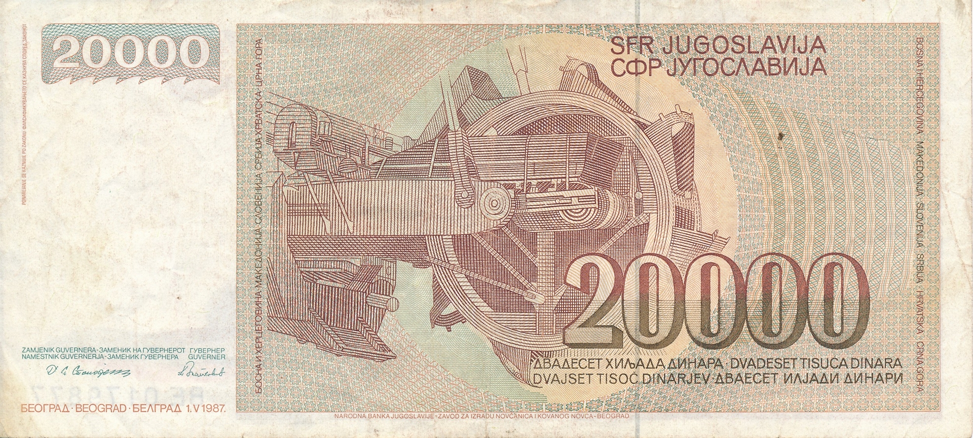 Na lijevoj strani nalazi se prikaz rudara, a u središnjem djelu državni grb, nominala i serijski broj.