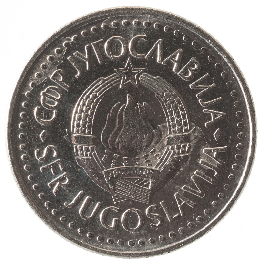 U sredini državni grb. Oko njega uz rub polukružno napisan tekst SFR JUGOSLAVIJA na latinici i ćirilici.