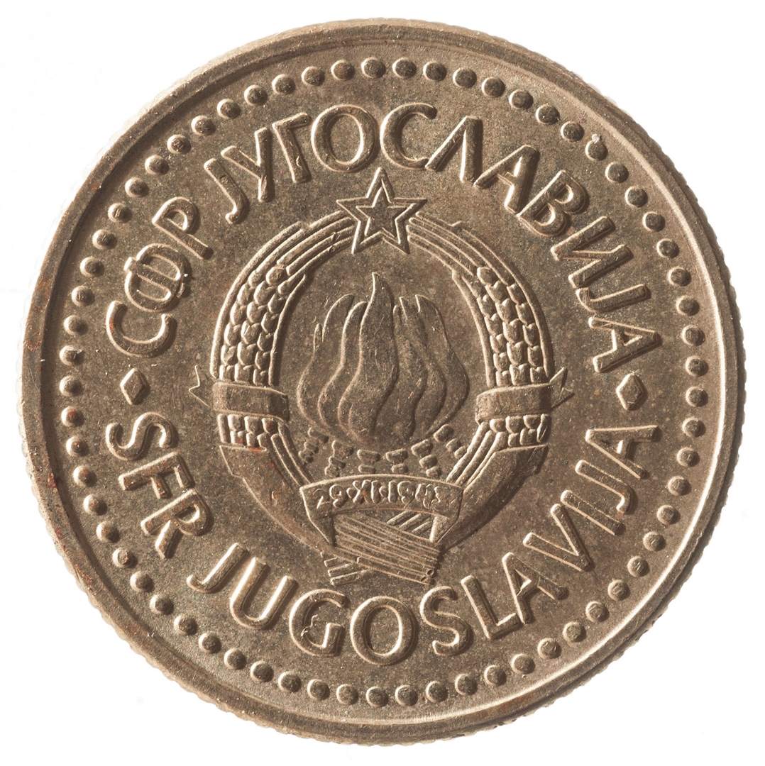 U sredini državni grb. U gornjem djelu uz rub polukružno napisan tekst SFR JUGOSLAVIJA na latinici i ćirilici.