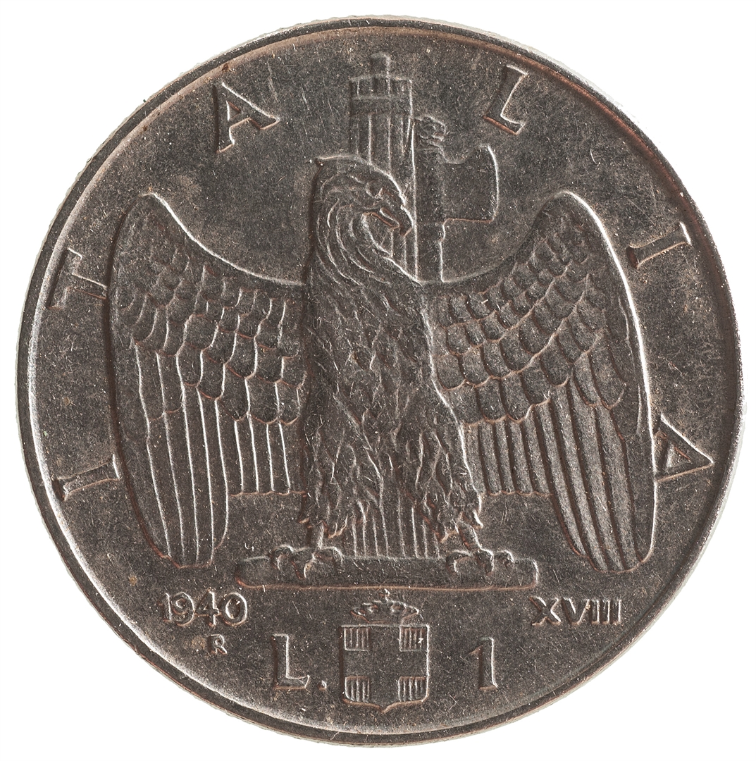 Centralni dio zauzima orao raširenih krila iza kojeg se nalazi fascio.Uz 2/3 ruba nalazi se natpis ITALIA. Ispod orla nalazi se grb , a sa njegove lijeve strane veliko slovo L. i godina 1940. Ispod nje nalazi se malo slovo R. Desno od grba nalazi se broj 1, a pored njega rimski broj XVIII.