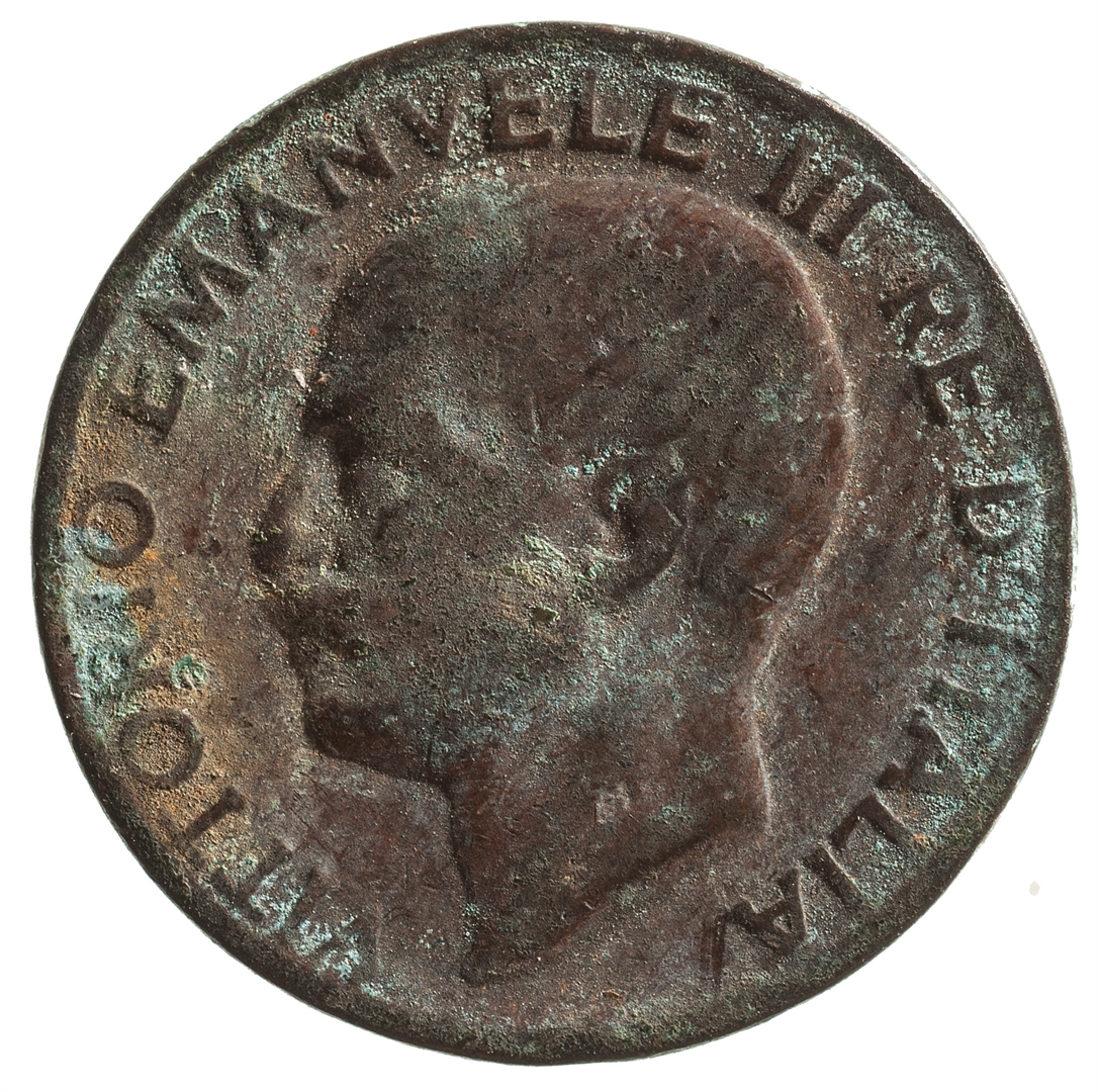 Centralni dio kovanice zauzima profil muške osobe sa pogledom u lijevo. Kružno uz rub kovanice proteže se natpis VITTORIO. EMANUELE. III. RE. D''ITALIA. Na dnu uz rub kovanice nalazi se natpis A. MOTTI.