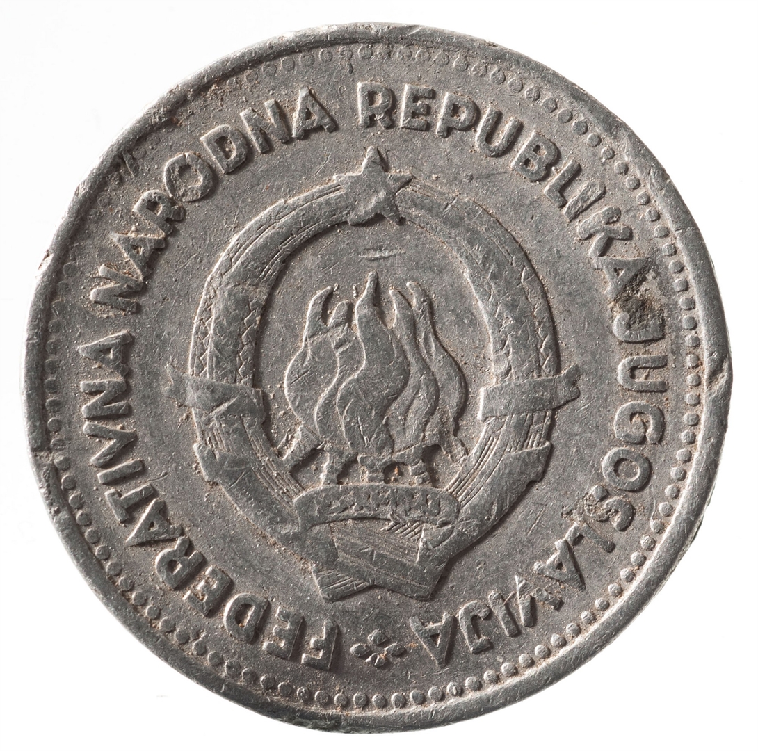 U sredini broj 2 (nominala), a ispod njega tekst DINARA. Duž cijelog gornjeg ruba polukružno poredano 8 petokrakih zvjezdi. U sredini uz lijevi i desni rub upisana godina 1953.