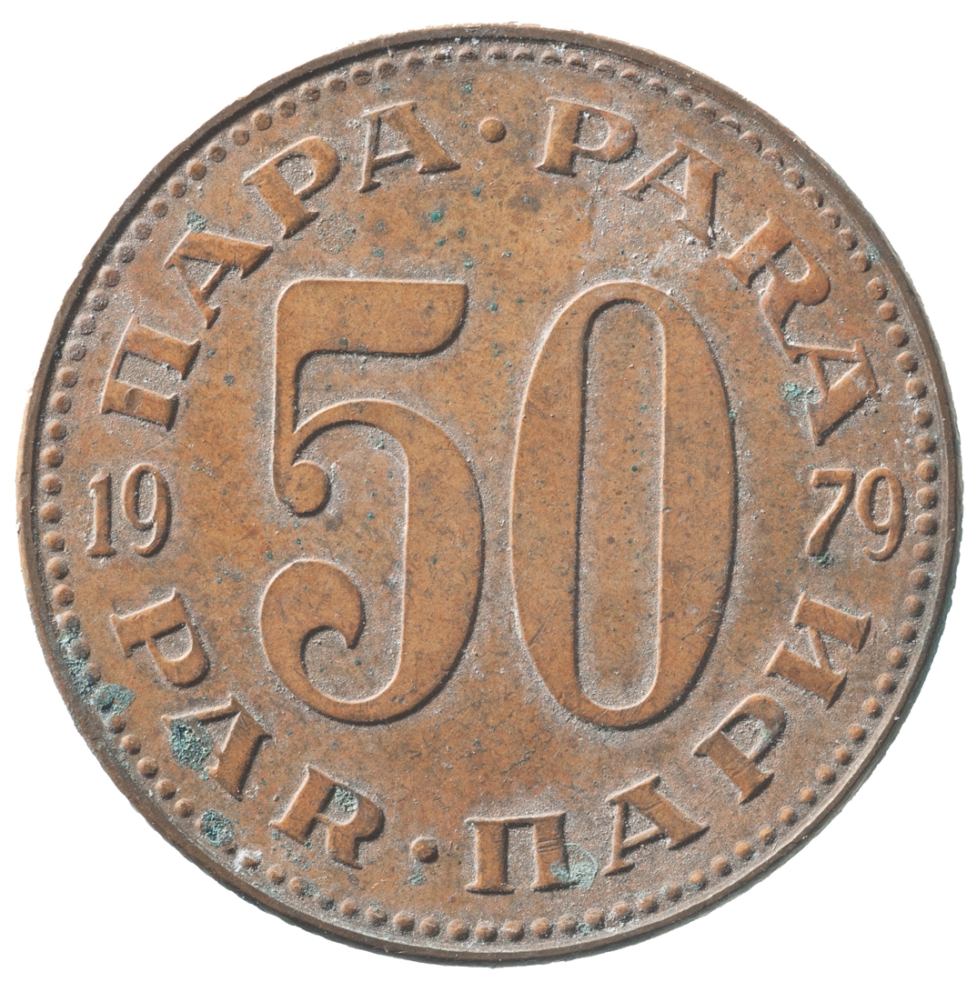 Avers: U sredini državni grb. U gornjem djelu uz rub polukružno napisan tekst SFR JUGOSLAVIJA na latinici i ćirilici. Revers: U sredini broj 50 (nominala), a oko njega tekst PARA na četiri jezika. U sredini uz lijevi i desni rub upisana godina 1979.