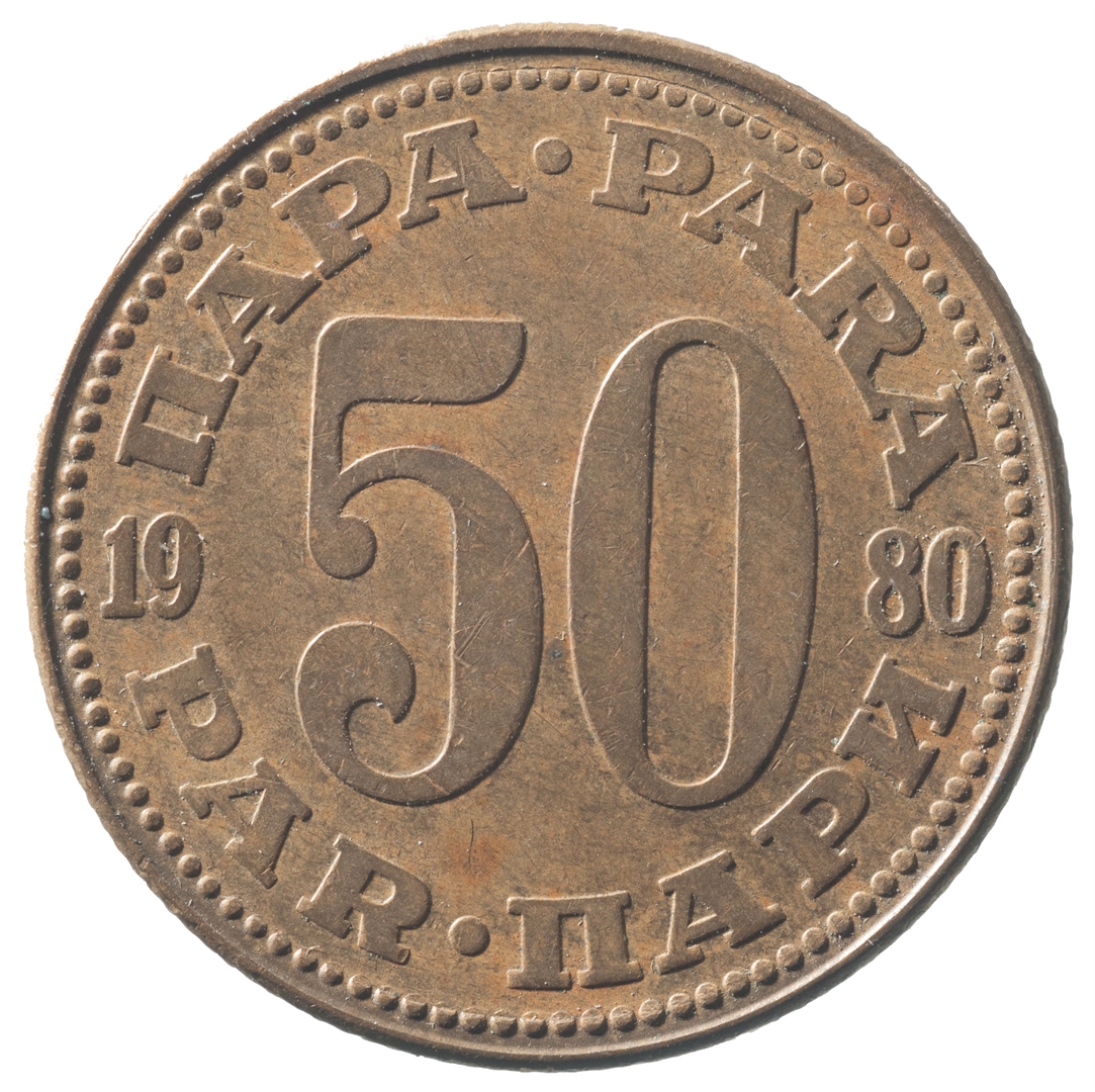 Avers: U sredini državni grb. U gornjem djelu uz rub polukružno napisan tekst SFR JUGOSLAVIJA na latinici i ćirilici. Revers: U sredini broj 50 (nominala), a oko njega tekst PARA na četiri jezika. U sredini uz lijevi i desni rub upisana godina 1980.