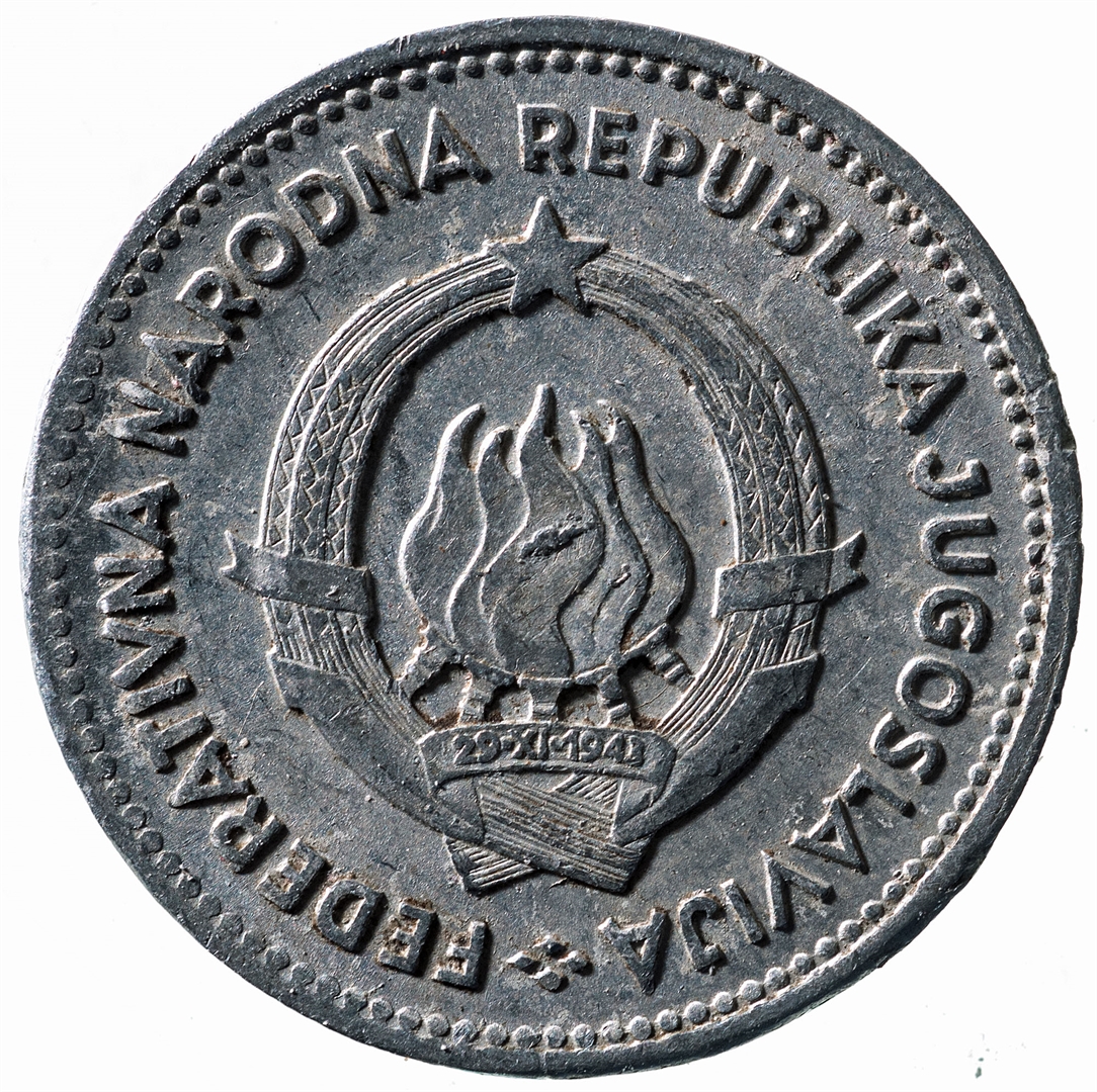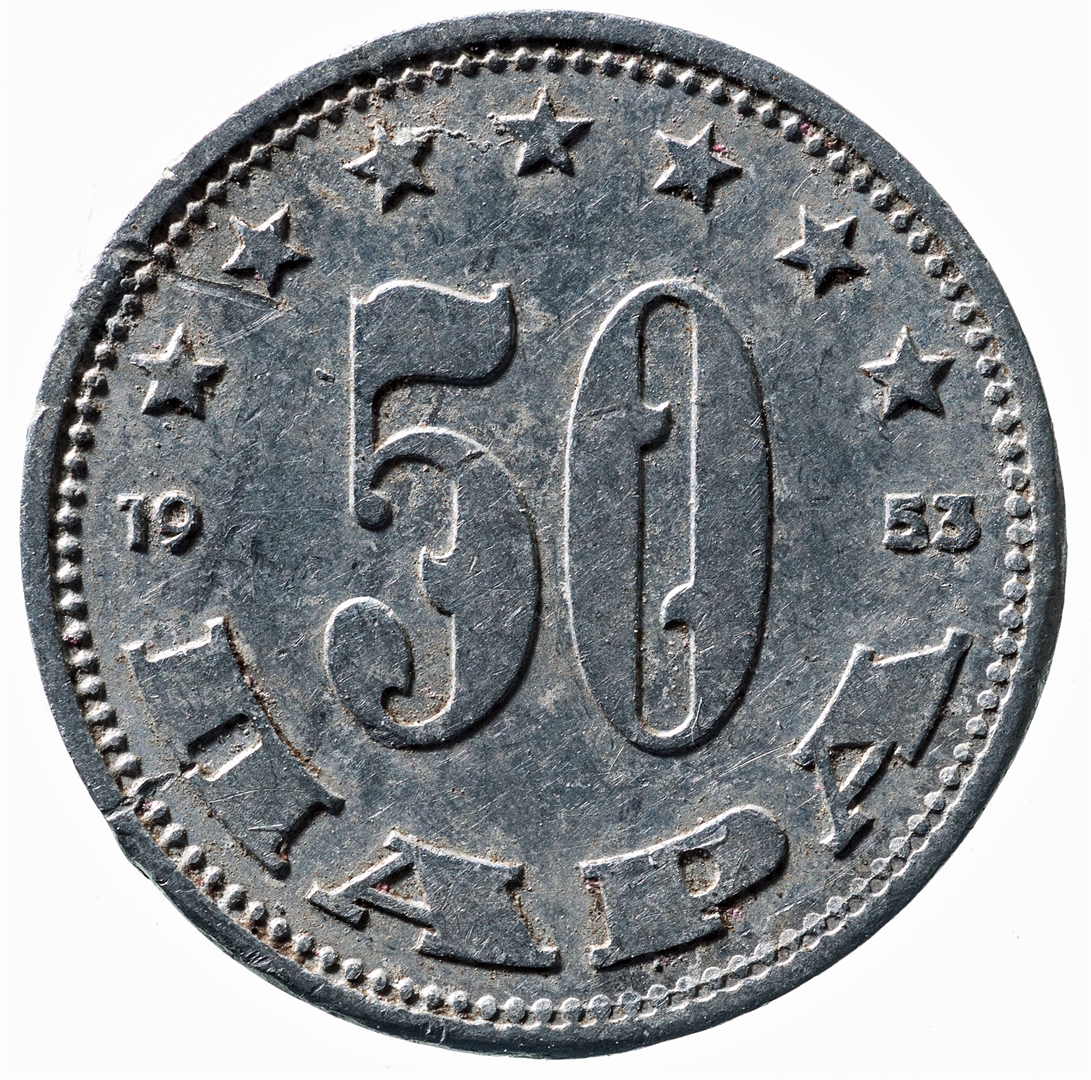 Avers: U sredini državni grb. U gornjem djelu uz rub polukružno napisan tekst FEDERATIVNA NARODNA REPUBLIKA JUGOSLAVIJA. Revers: U sredini broj 50 (nominala), a ispod njega tekst PARA. Duž cijelog gornjeg ruba polukružno poredano 7 petokrakih zvjezdi. Na sredini godina 1953.