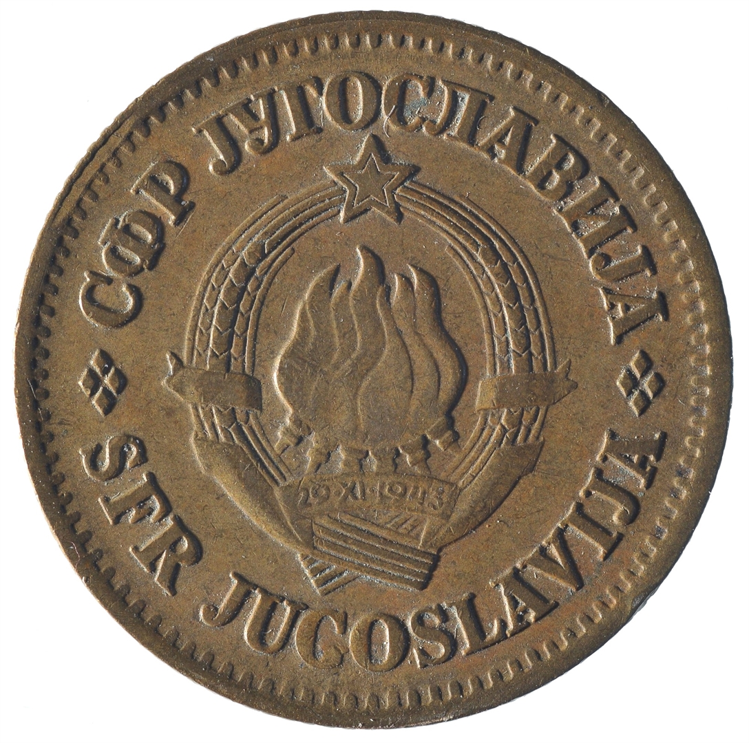 U sredini državni grb. U gornjem djelu uz rub polukružno napisan tekst SFR JUGOSLAVIJA na latinici i ćirilici.