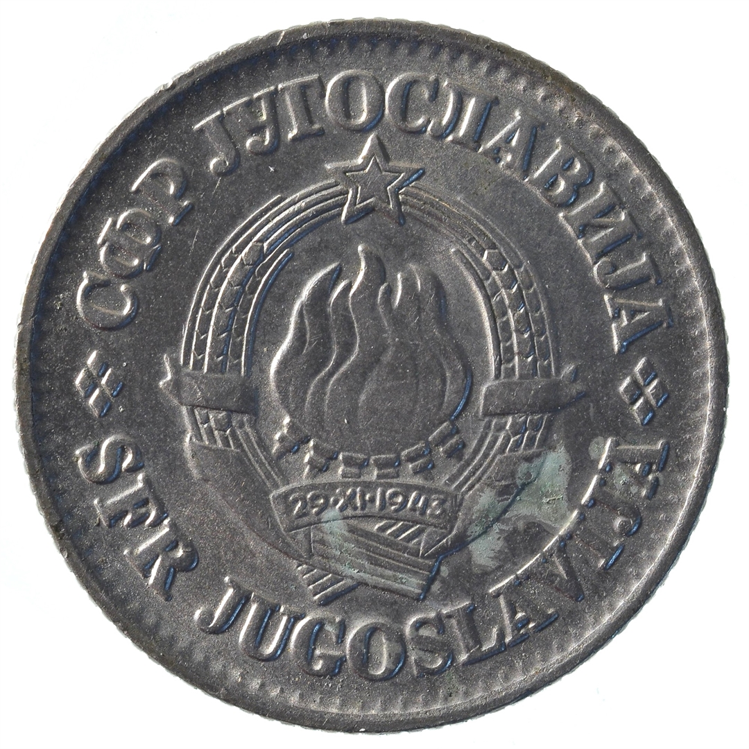 U sredini državni grb. U gornjem djelu uz rub polukružno napisan tekst SFR JUGOSLAVIJA na latinici i ćirilici.
