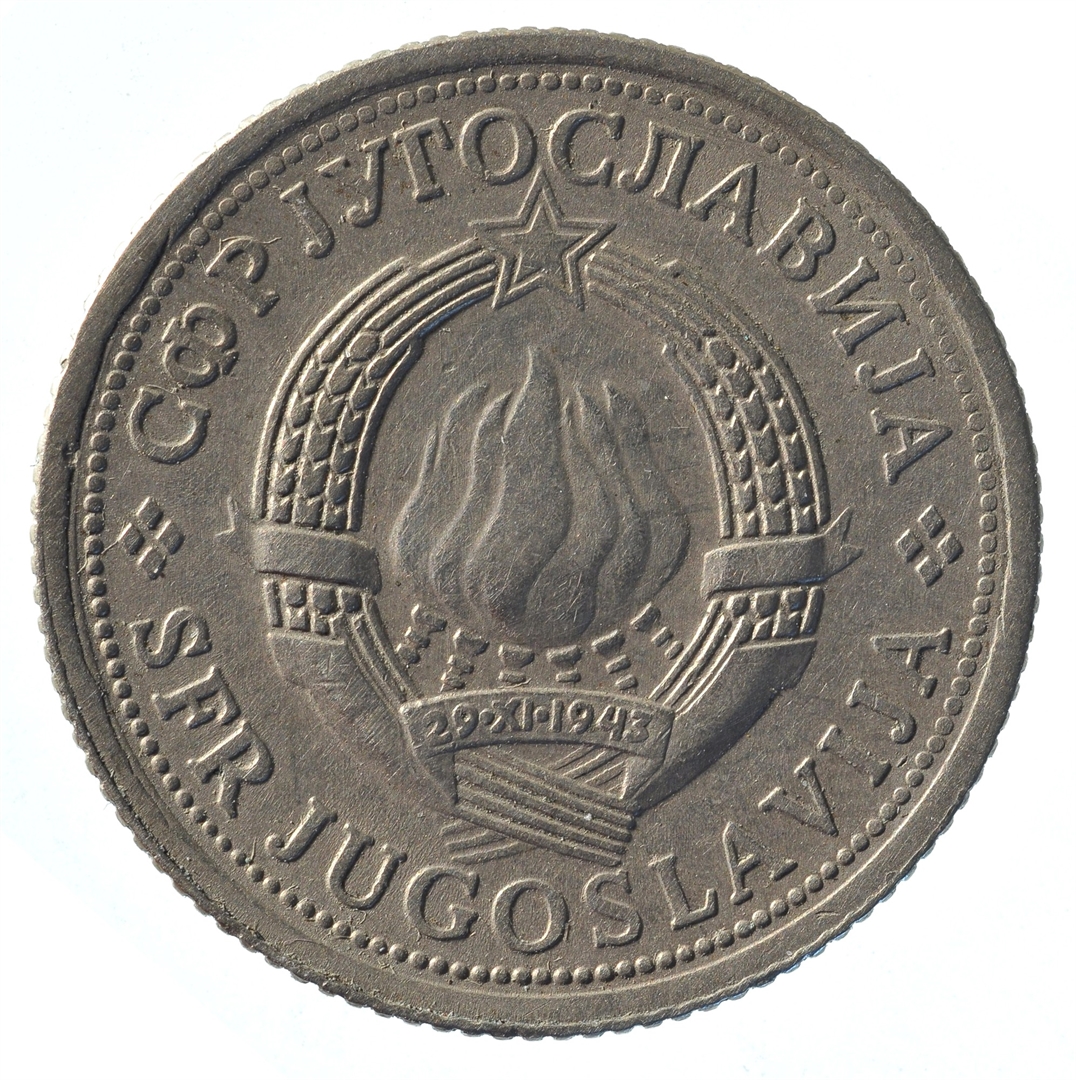 U sredini državni grb. U gornjem djelu uz rub polukružno napisan tekst SFR JUGOSLAVIJA na latinici i ćirilici.