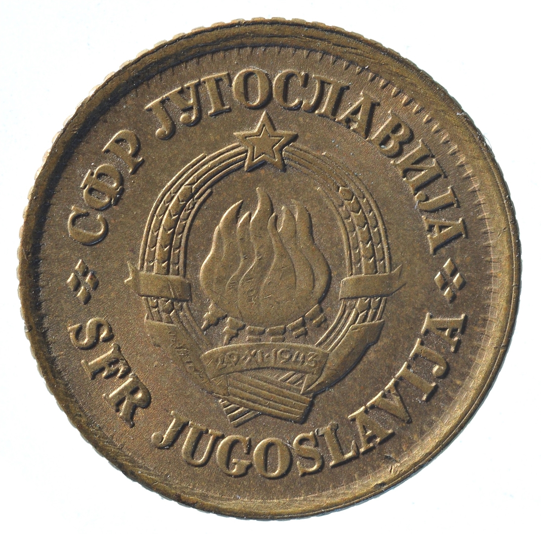 U sredini državni grb. U gornjem djelu uz rub polukružno napisan tekst SFR JUGOSLAVIJA na latinici i ćirilici.