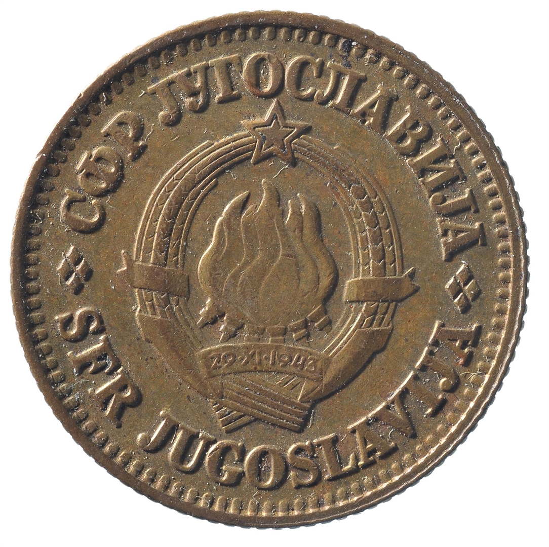 U sredini državni grb. U gornjem djelu uz rub polukružno napisan tekst SFR JUGOSLAVIJA na latinici i ćirilici.
