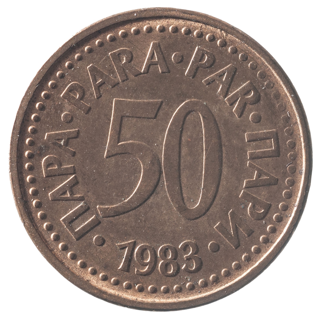 Avers: U sredini državni grb. U oko njega uz rub polukružno napisan tekst SFR JUGOSLAVIJA na latinici i ćirilici. Revers: U sredini broj 50 (nominala), oko njega tekst PARA na četiri jezika, a ispod toga godina 1983.