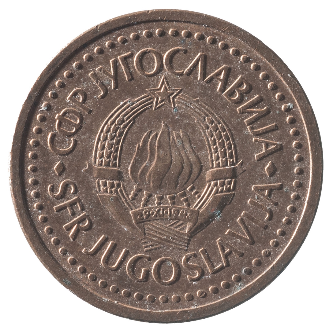 U sredini državni grb. U oko njega uz rub polukružno napisan tekst SFR JUGOSLAVIJA na latinici i ćirilici.